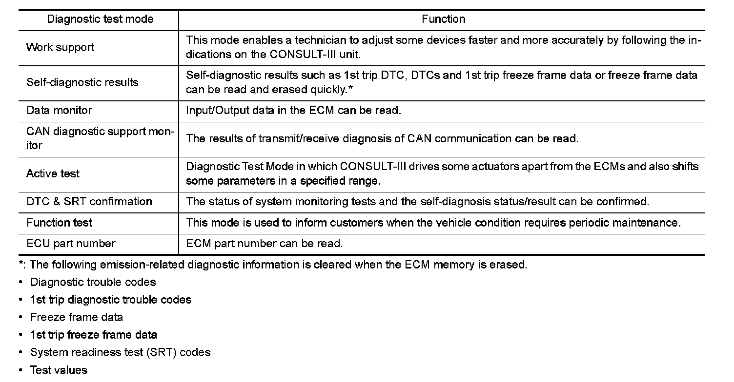 Permanent DTCs stored in ECM memory are displayed on the CONSULT-III screen to show if a driving pattern required for erasing permanent DTCs is complete (CMPLT) or incomplete (INCMP).