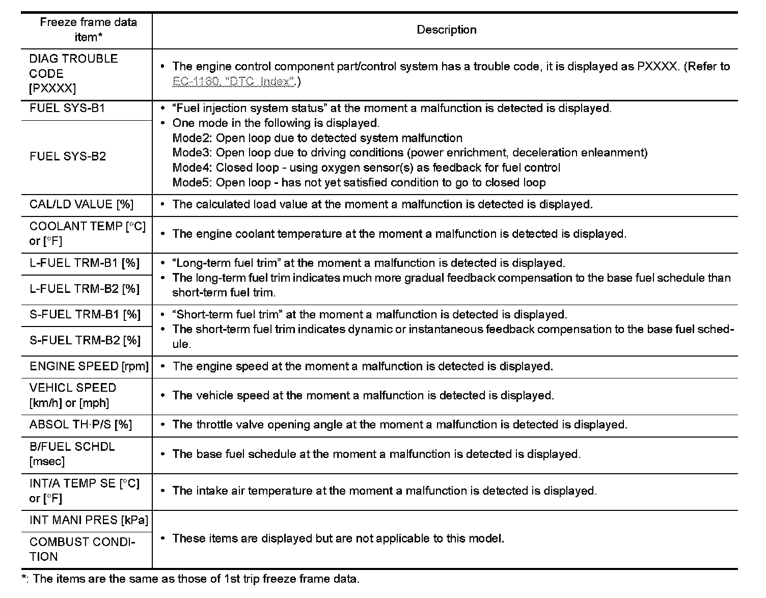 Freeze Frame Data and 1st Trip Freeze Frame Data