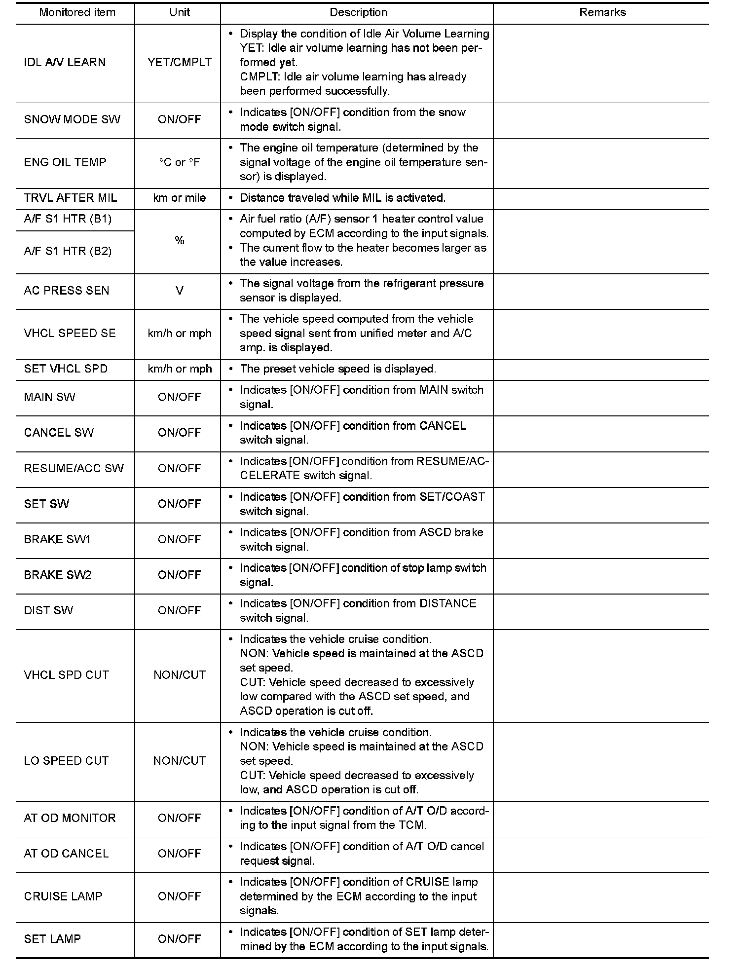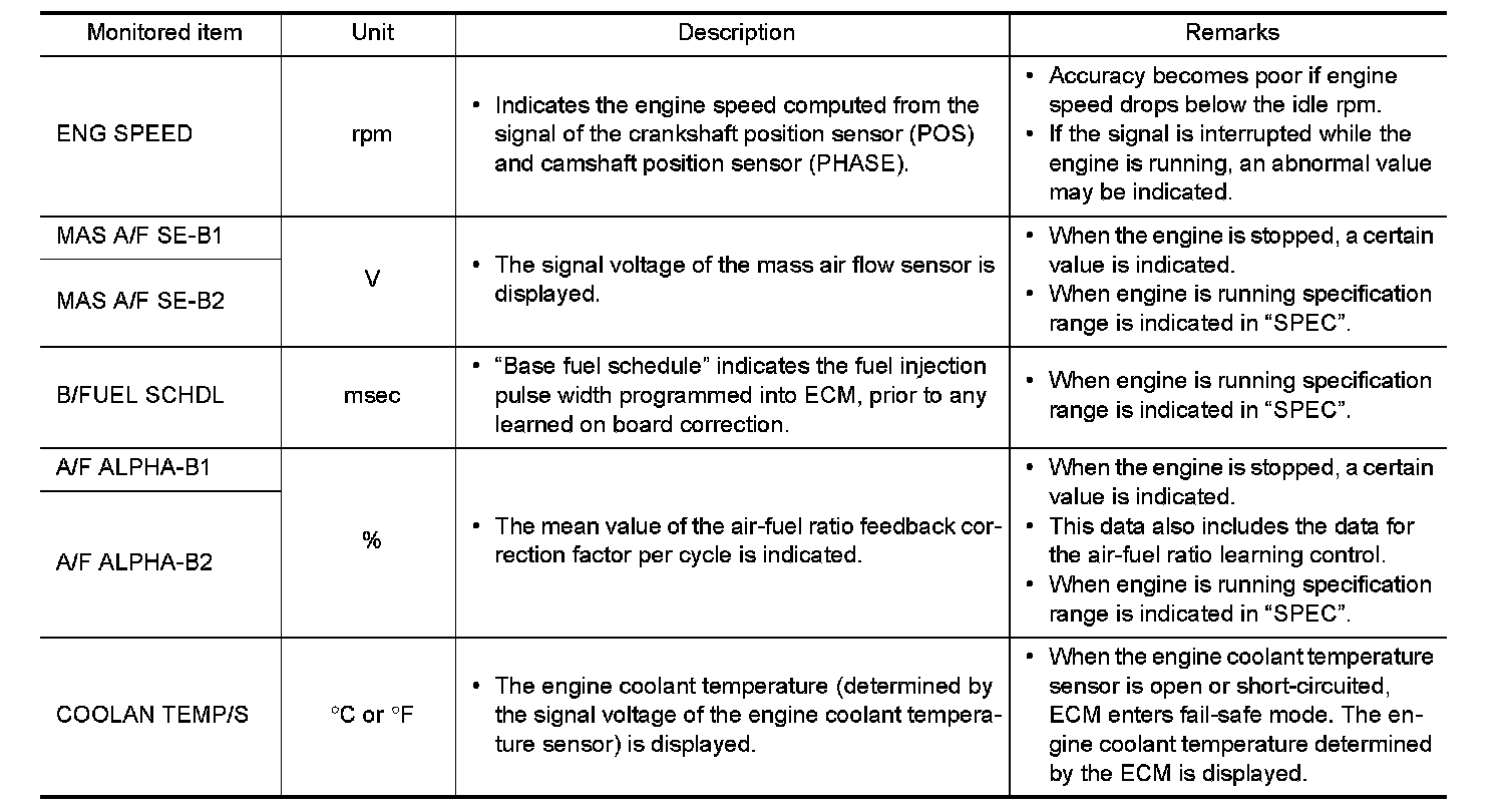 - If "TIME" is neither "0" nor "1t", the DTC occurred in the past and ECM shows the number of times the vehicle has been driven since the last detection of the DTC.