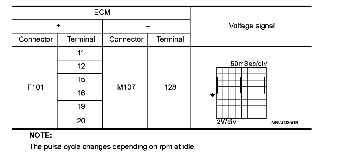 2. Read the voltage signal between ECM harness connector terminals under the following conditions with an oscilloscope.