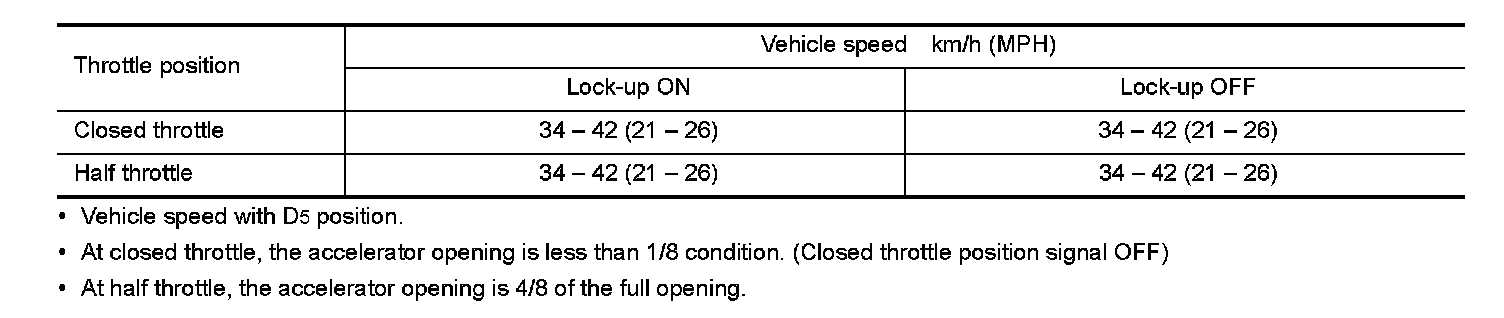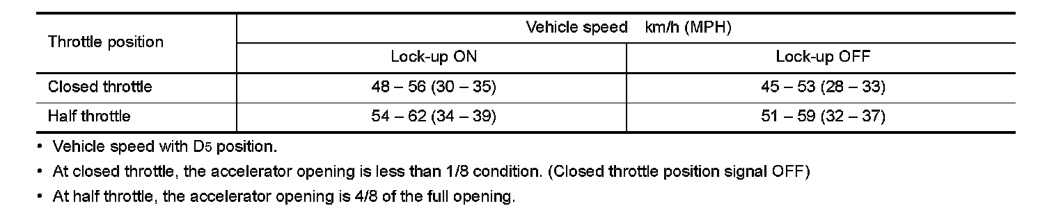 Vehicle Speed at Which Lock-up Occurs/Releases