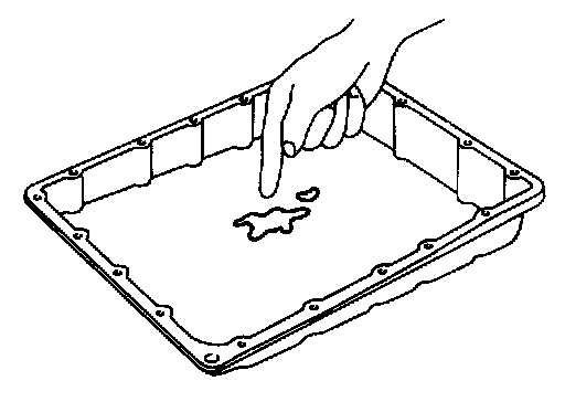 Check foreign materials in oil pan to help determine causes of malfunction. If the ATF is very dark, smells burned, or contains foreign particles, the frictional material (clutches, band) may need replacement. A tacky film that will not wipe clean indicates varnish build up.