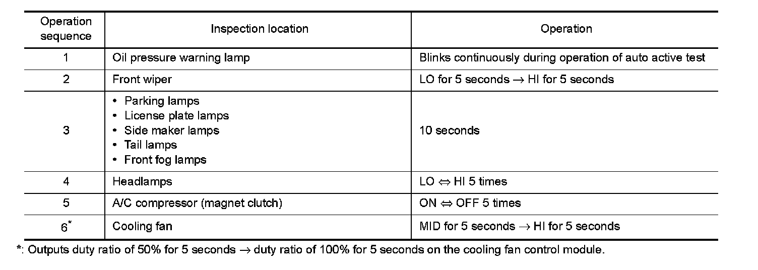5. The oil pressure warning lamp starts blinking when the auto active test starts.