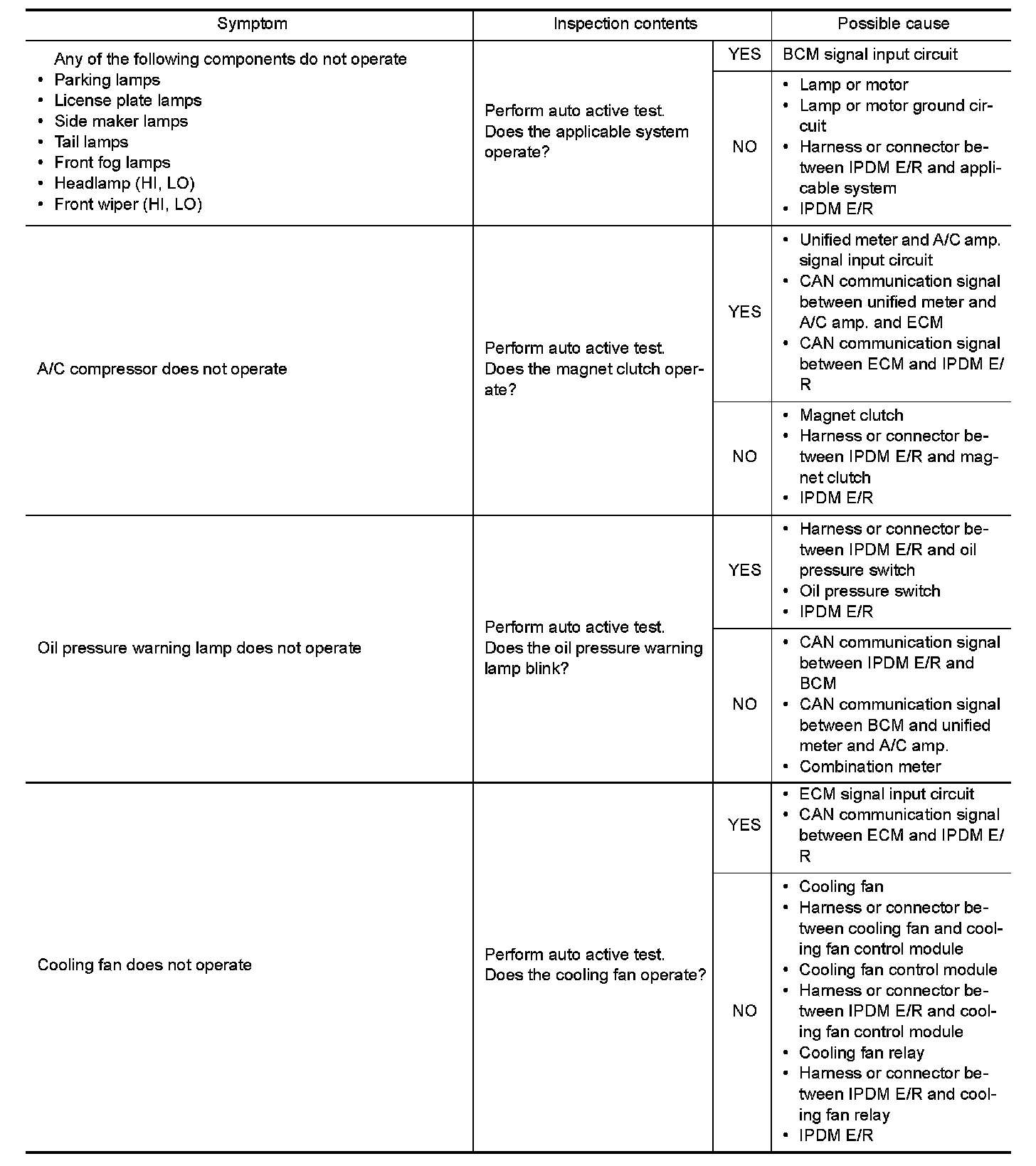 - The auto active test facilitates troubleshooting if any systems controlled by IPDM E/R cannot be operated.