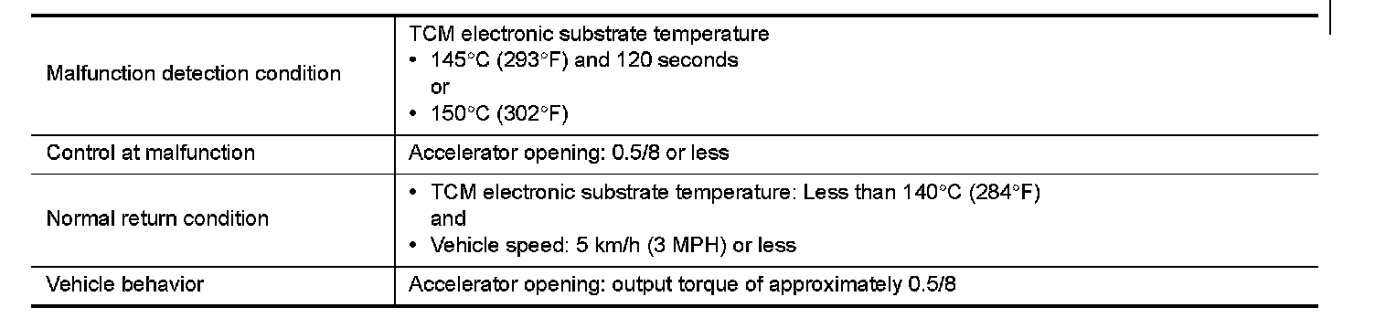 The TCM becomes the protection control status temporarily to protect the safety when the safety of TCM and transmission is lost. It automatically returns to the normal status if the safety is secured.