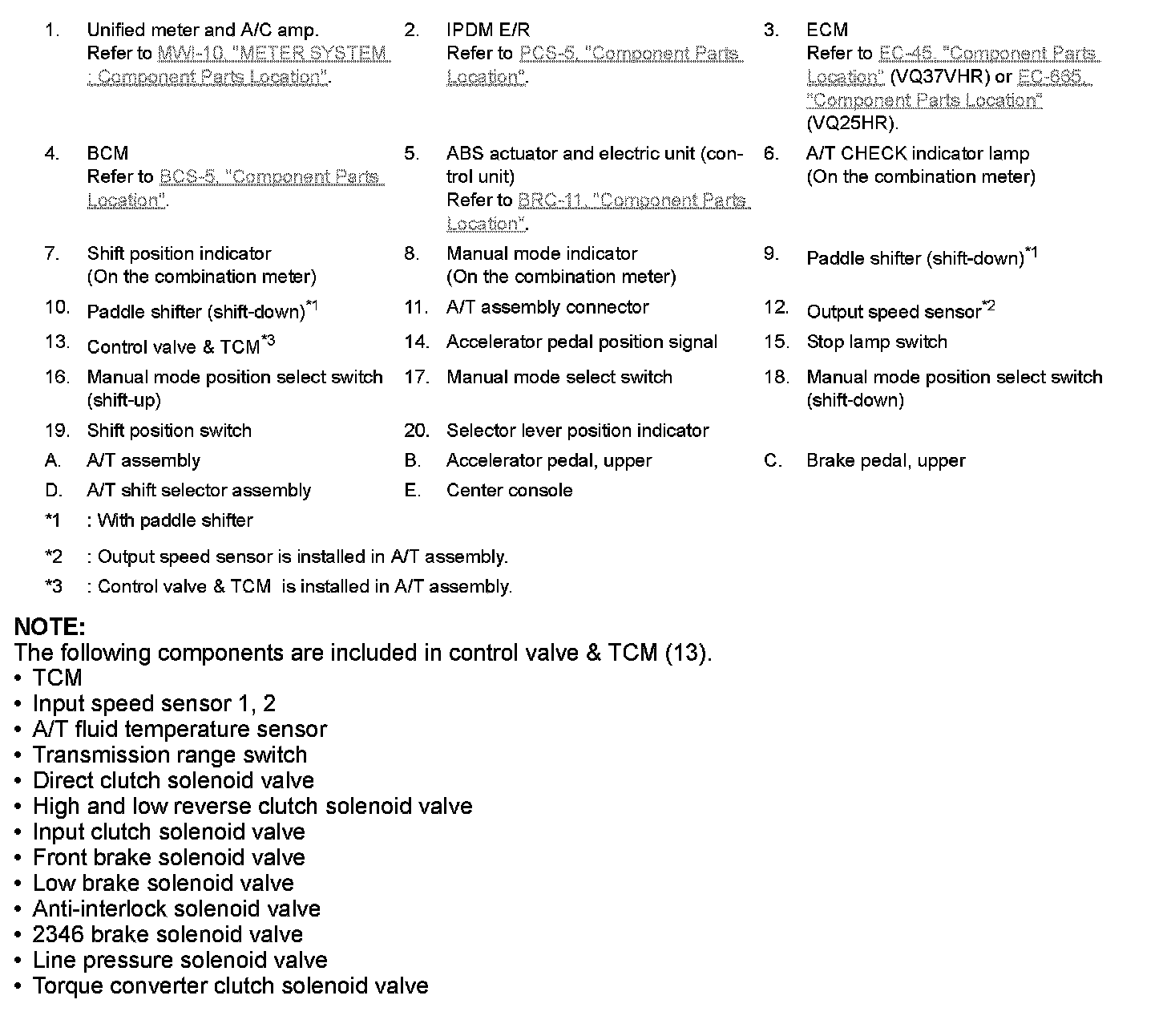 The following components are included in control valve & TCM (13).