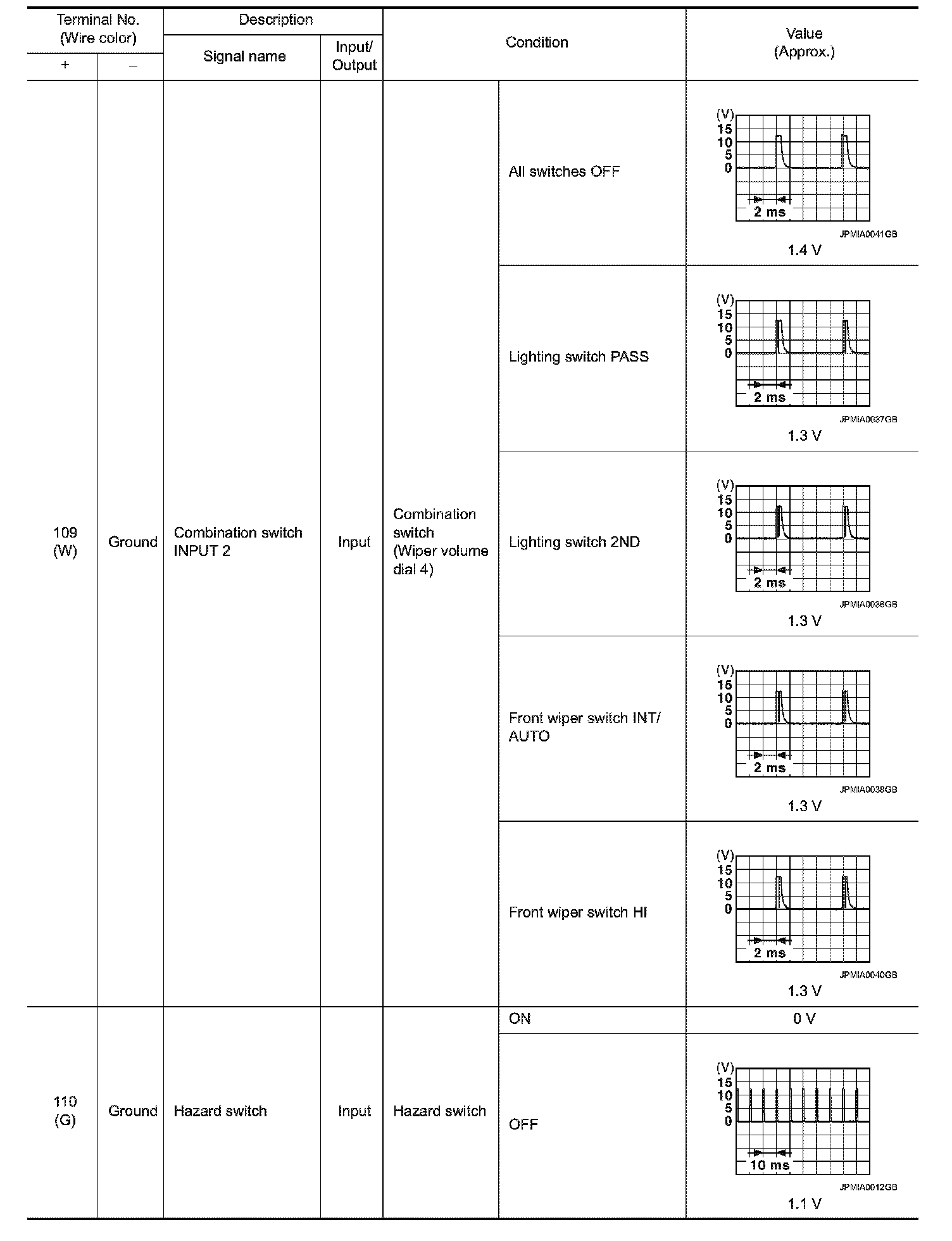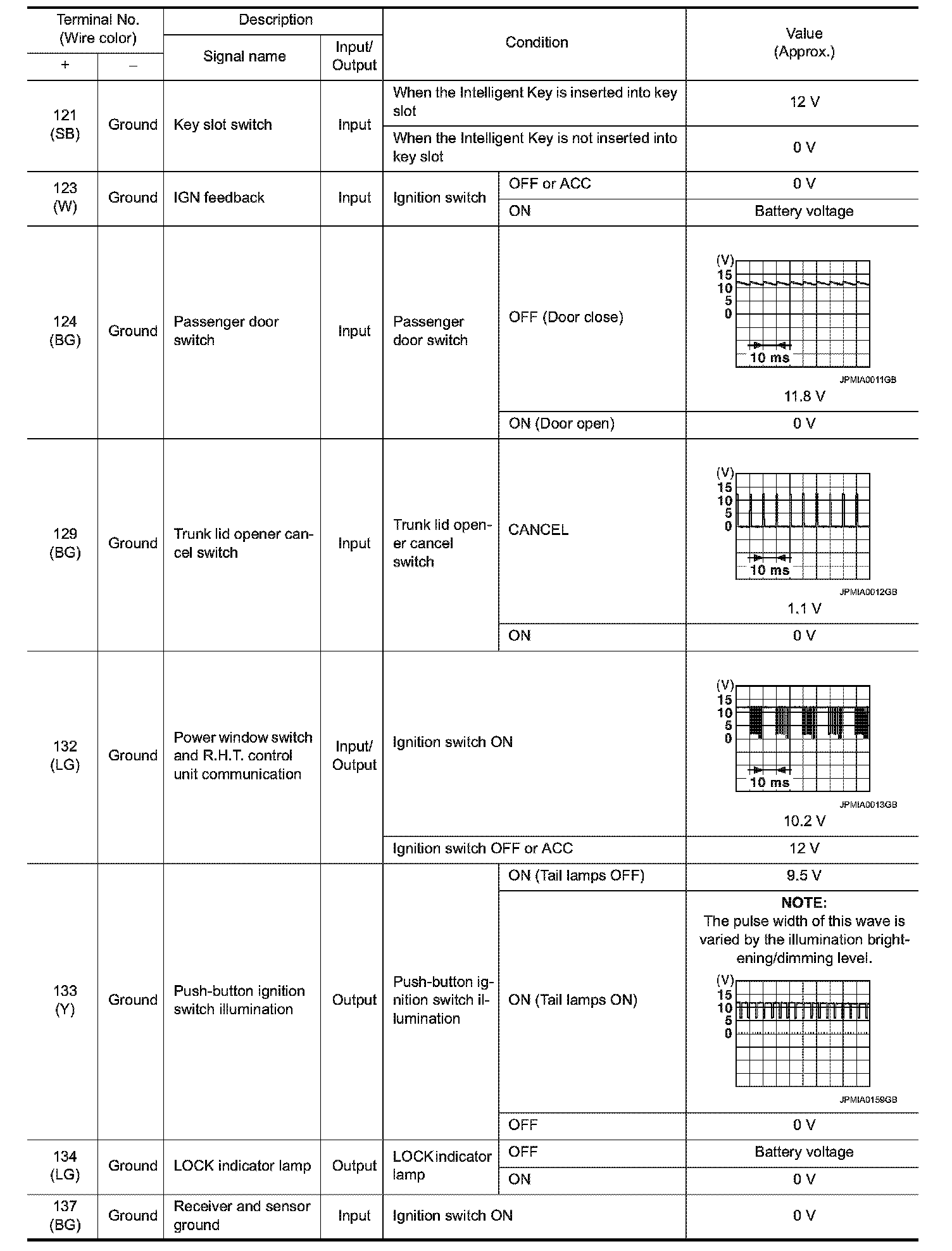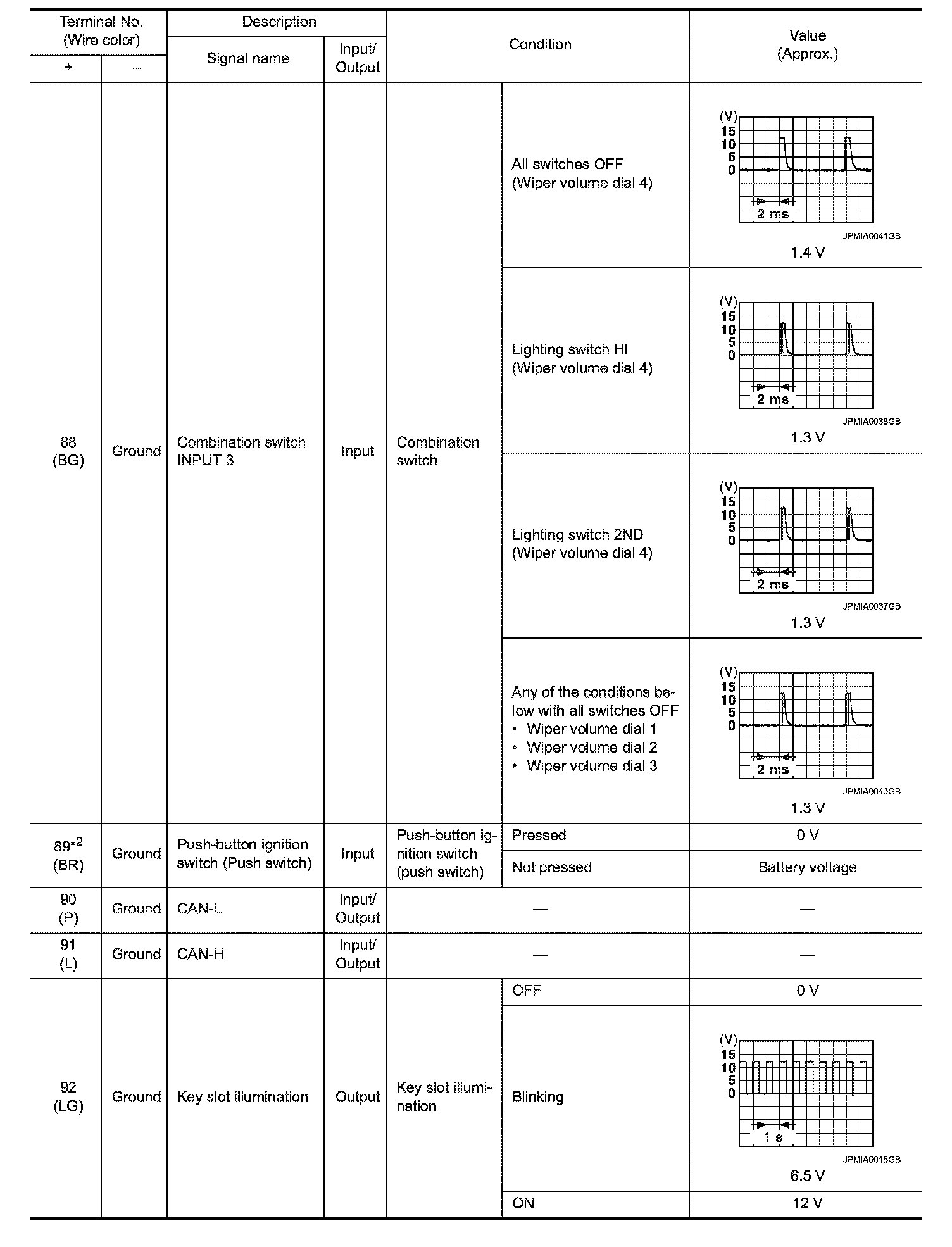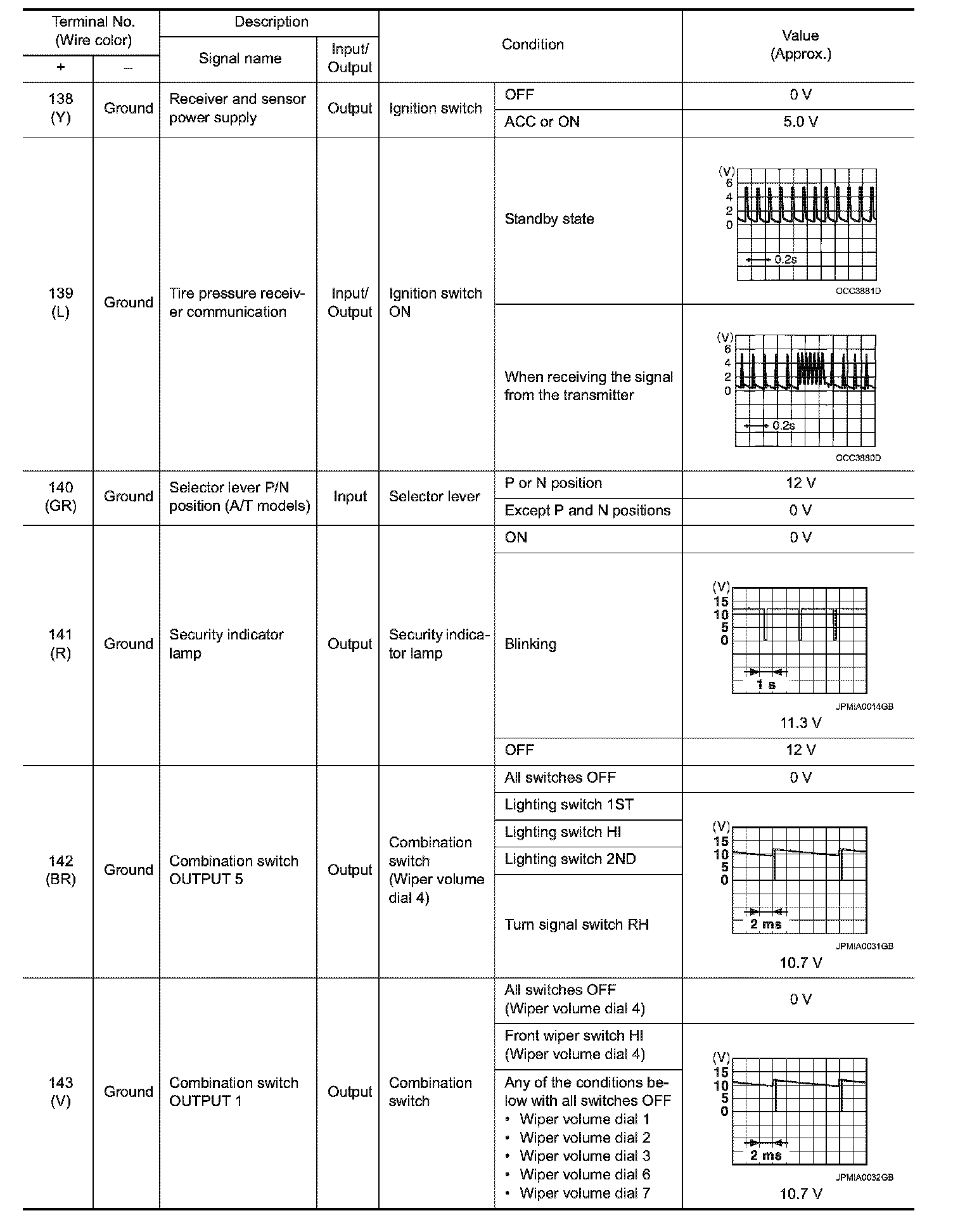 Pinout Values and Diagnostic Parameters