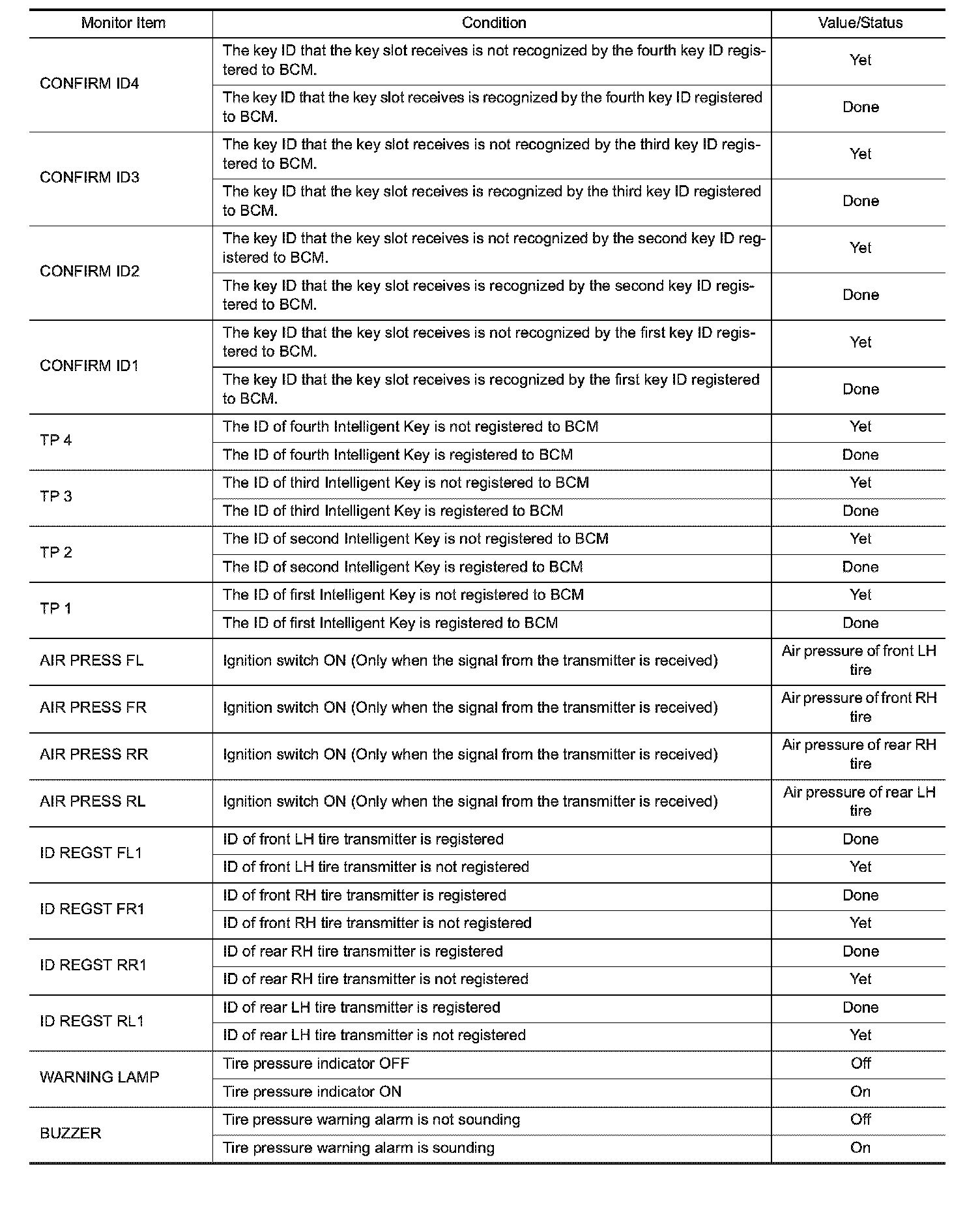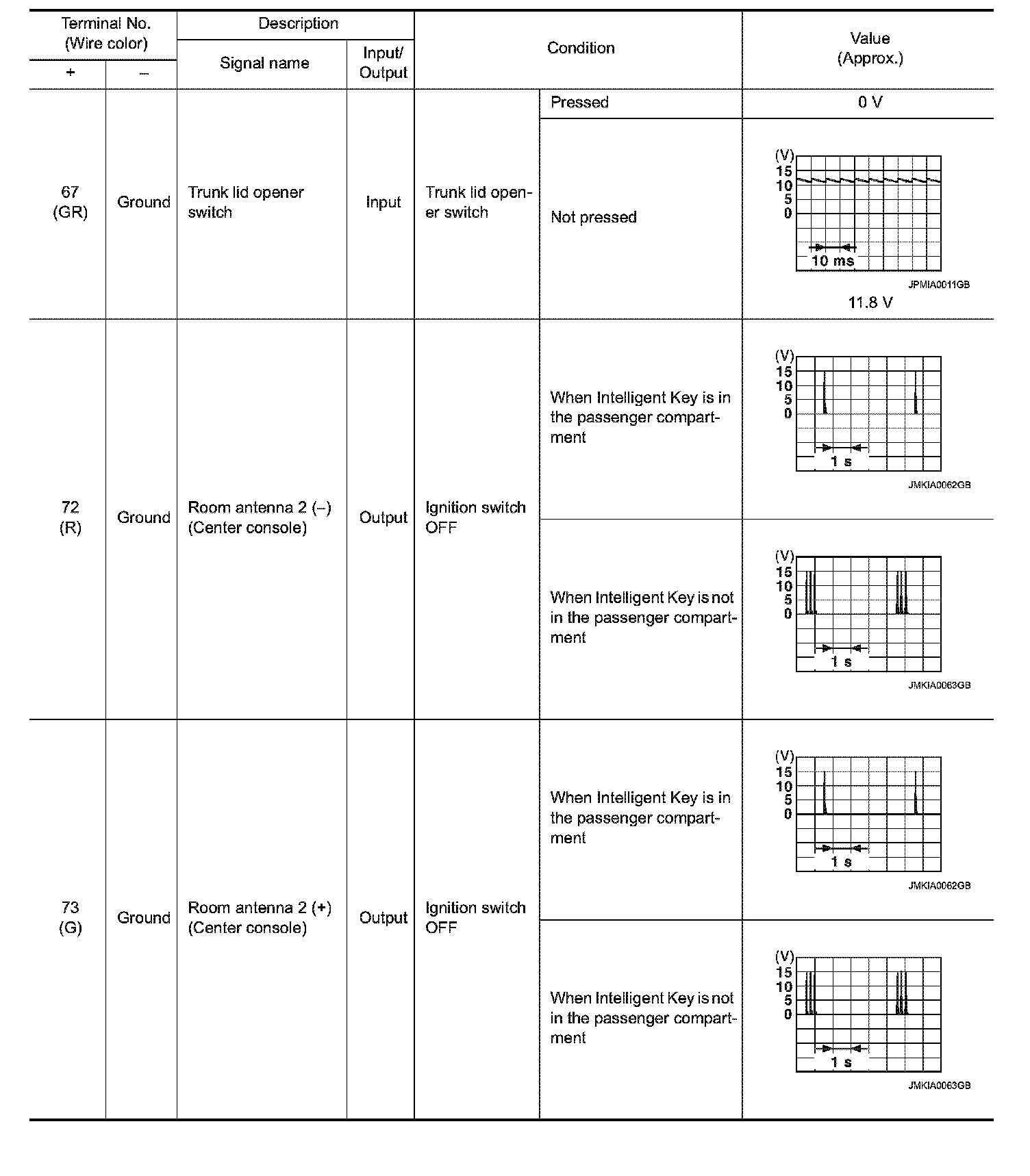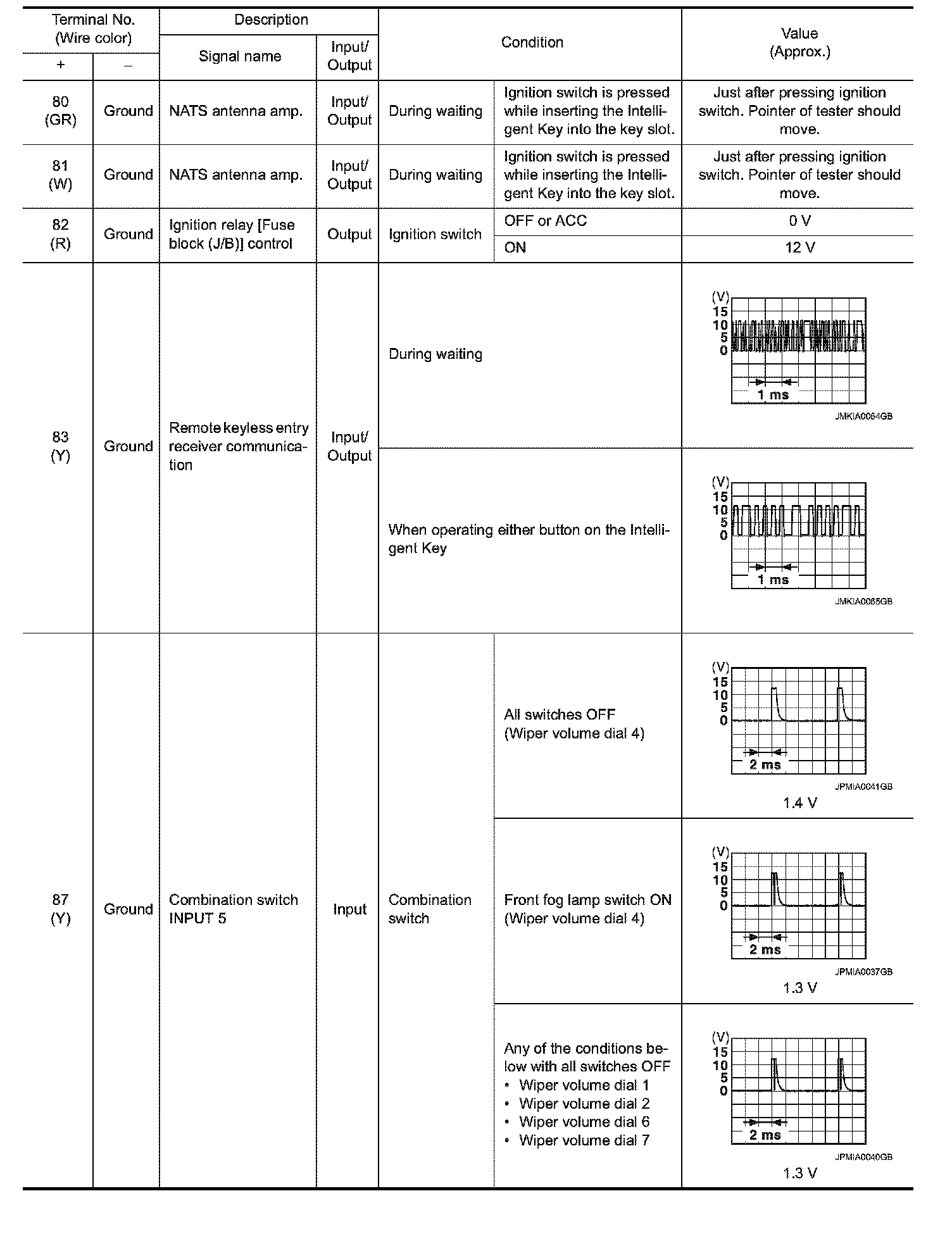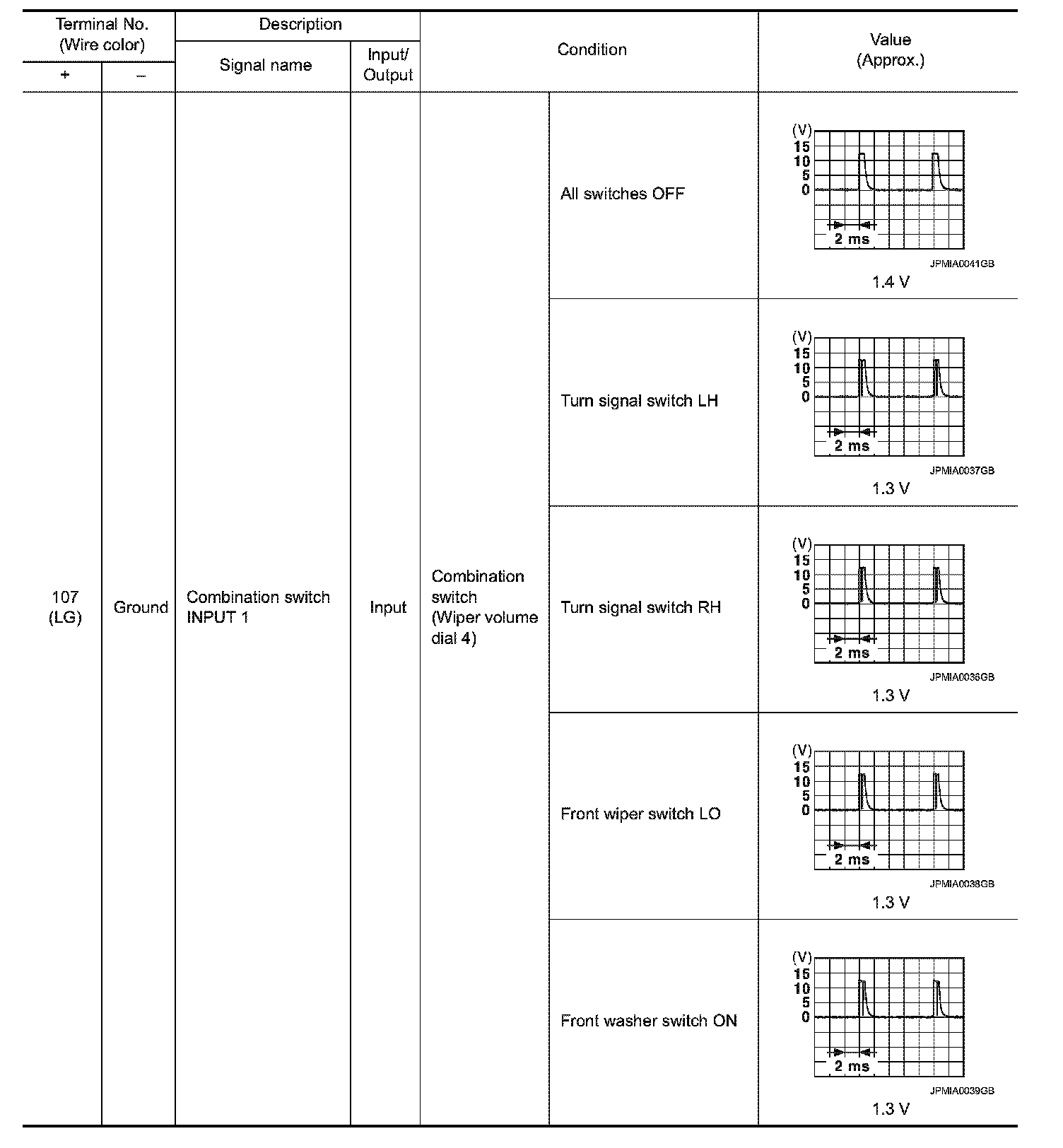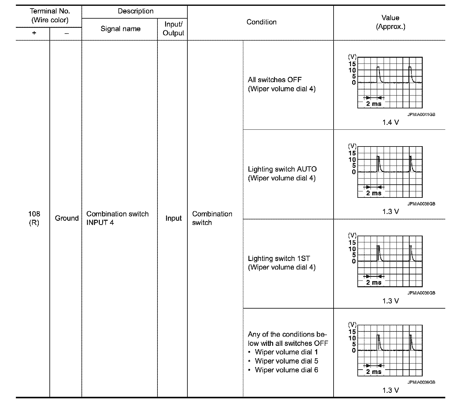 Pinout Values and Diagnostic Parameters