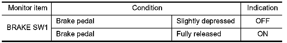 3. Check "BRAKE SW1" indication under the following conditions.