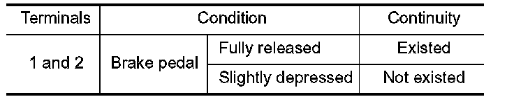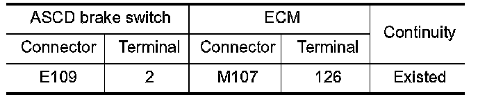 2. Check the continuity between ASCD brake switch terminals under the following conditions.