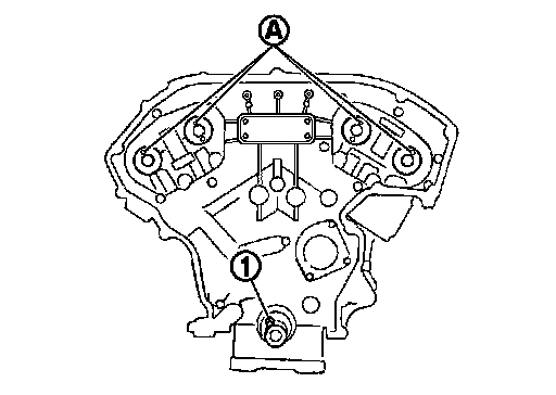 1. Check that dowel pin (A) and crankshaft key (1) are located as shown in the figure. (No. 1 cylinder at compression TDC)