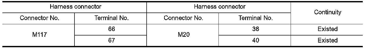 NO - Repair the main line between the harness connectors M117 and M20.