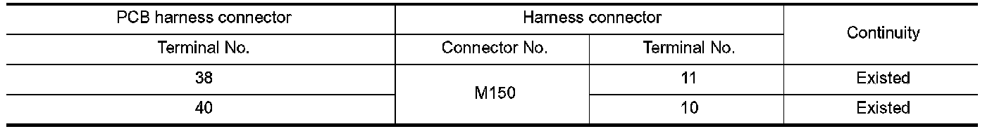 2. Check the continuity between the PCB harness connector and the harness connector.