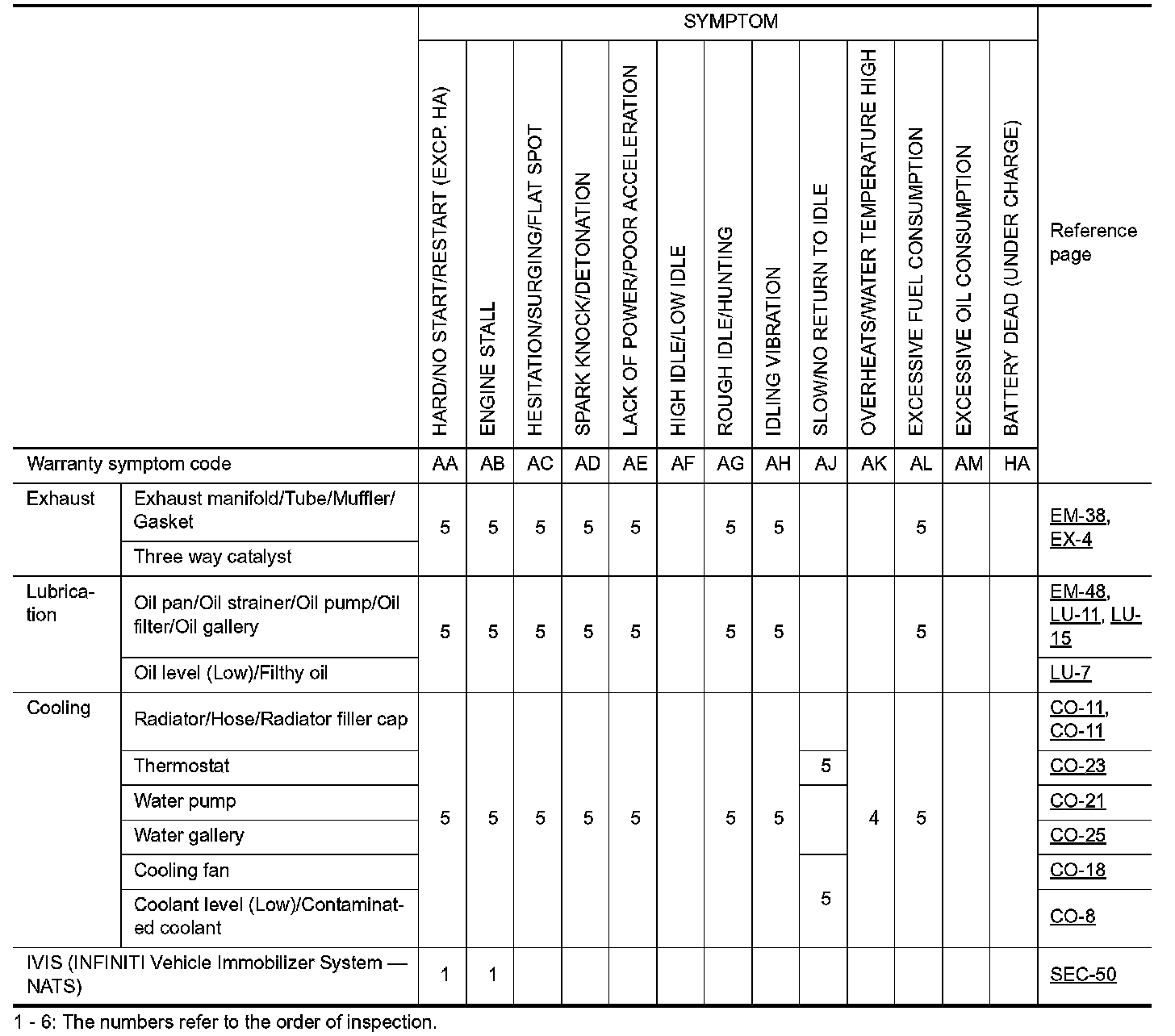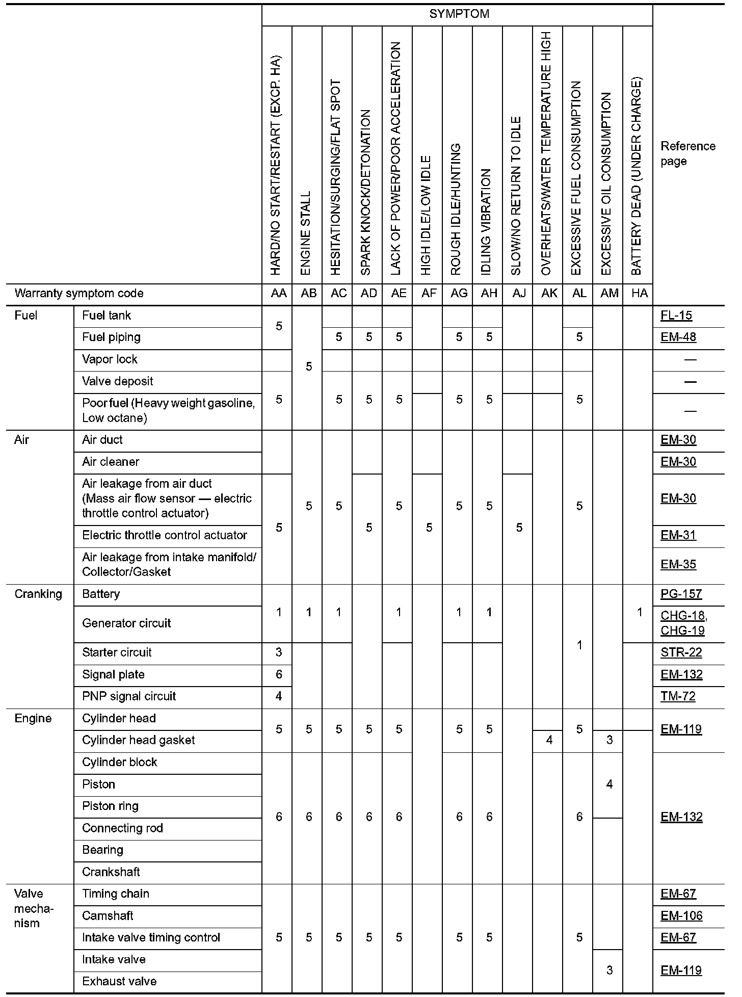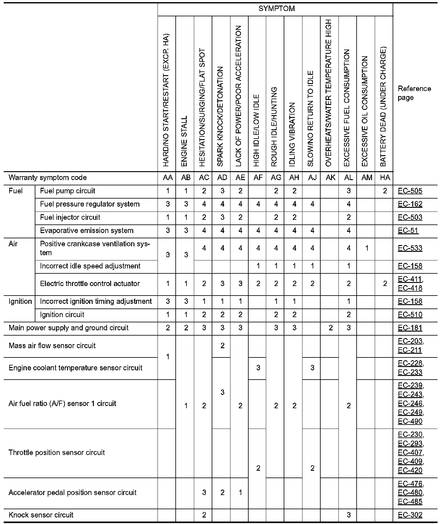 ENGINE CONTROL SYSTEM SYMPTOMS