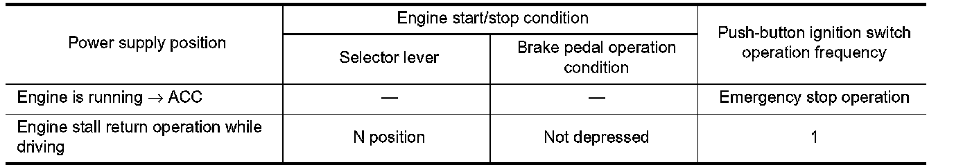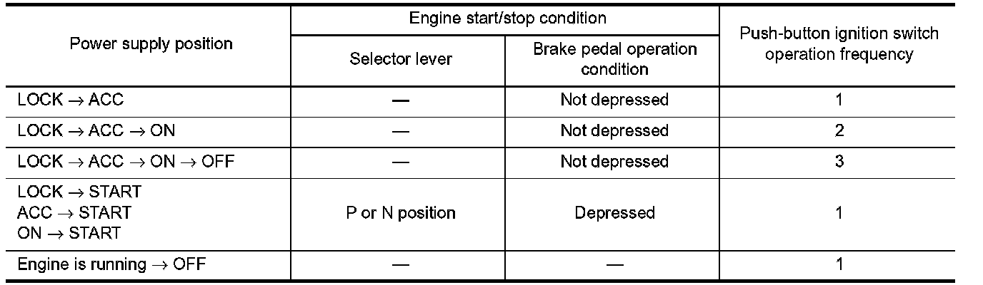 *: For the engine start condition, refer to "POWER SUPPLY POSITION CHANGE TABLE BY PUSH-BUTTON