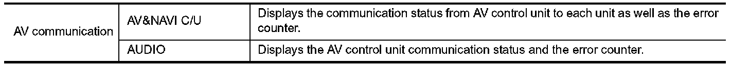 When "AV communication" of "CAN DIAG Support Monitor" is selected, the following function will be performed.