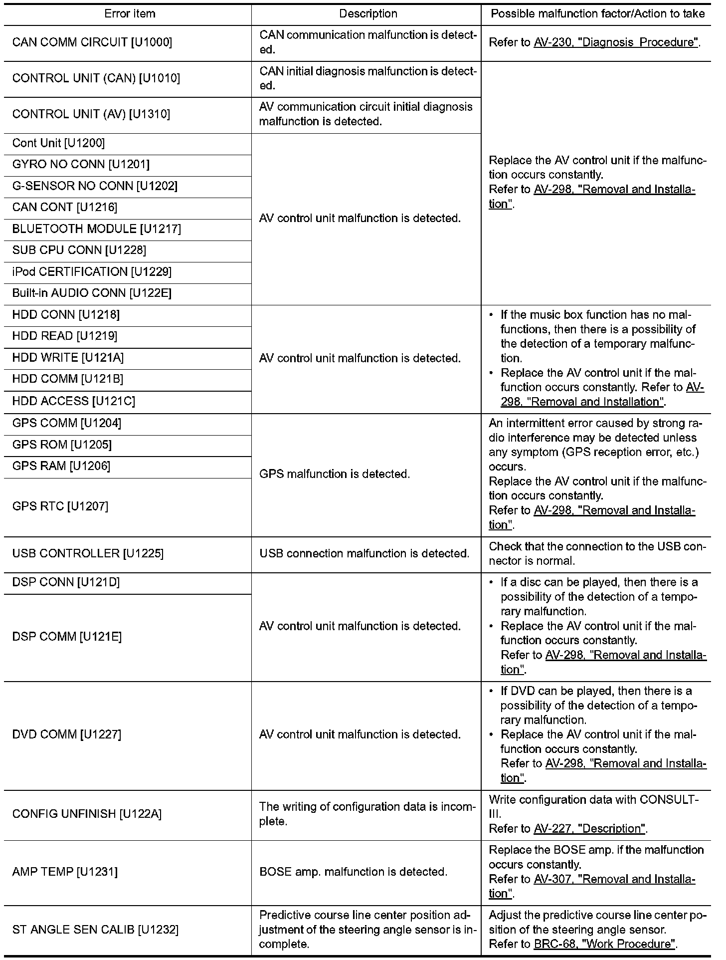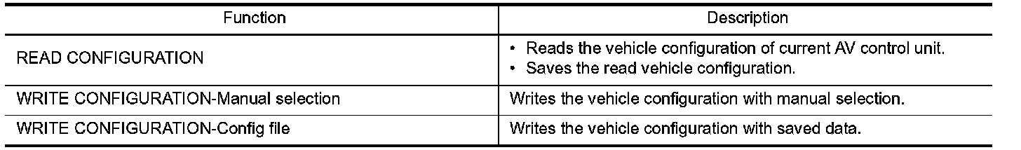 CONSULT-III performs the following functions via the communication with the AV control unit.
