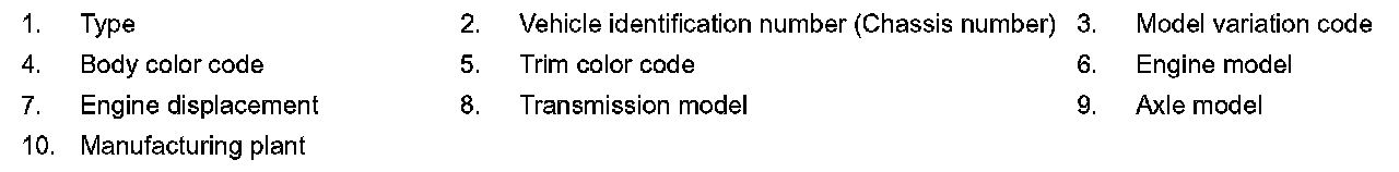 VEHICLE IDENTIFICATION NUMBER ARRANGEMENT