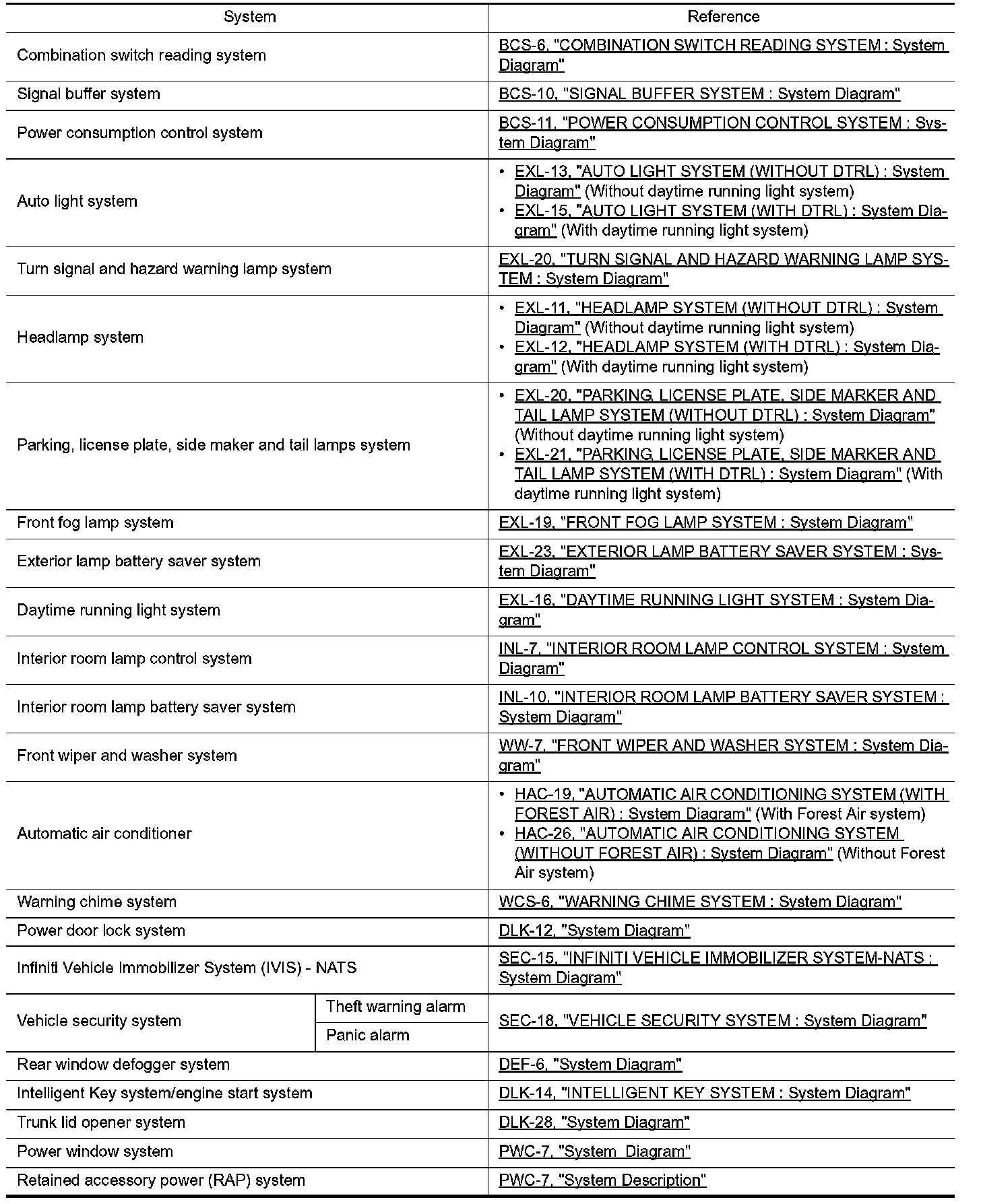 - BCM has combination switch reading function for reading the operation status of combination switches (light, turn signal, wiper and washer) in addition to a function for controlling the operation of various electrical components. It also has the signal transmission function as the passed point of signal and the power saving control function that reduces the power consumption with the ignition switch OFF.