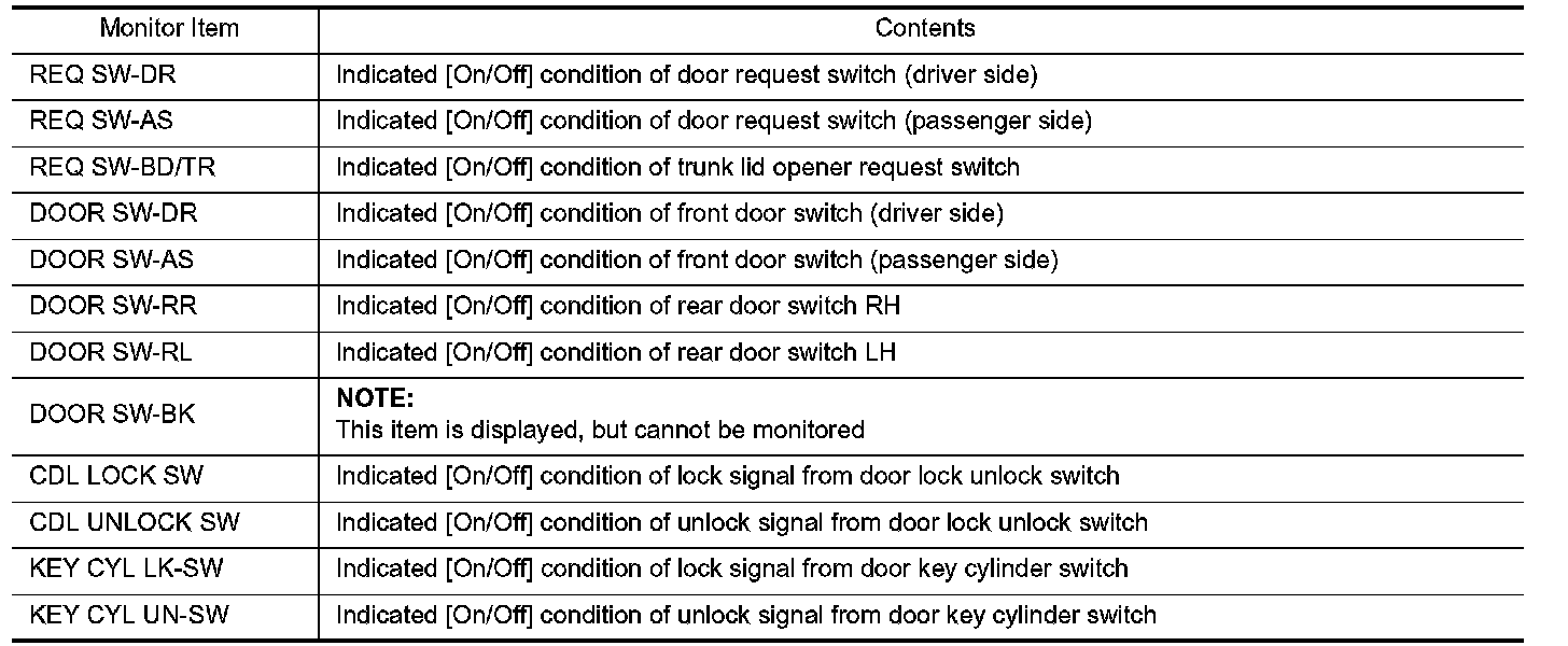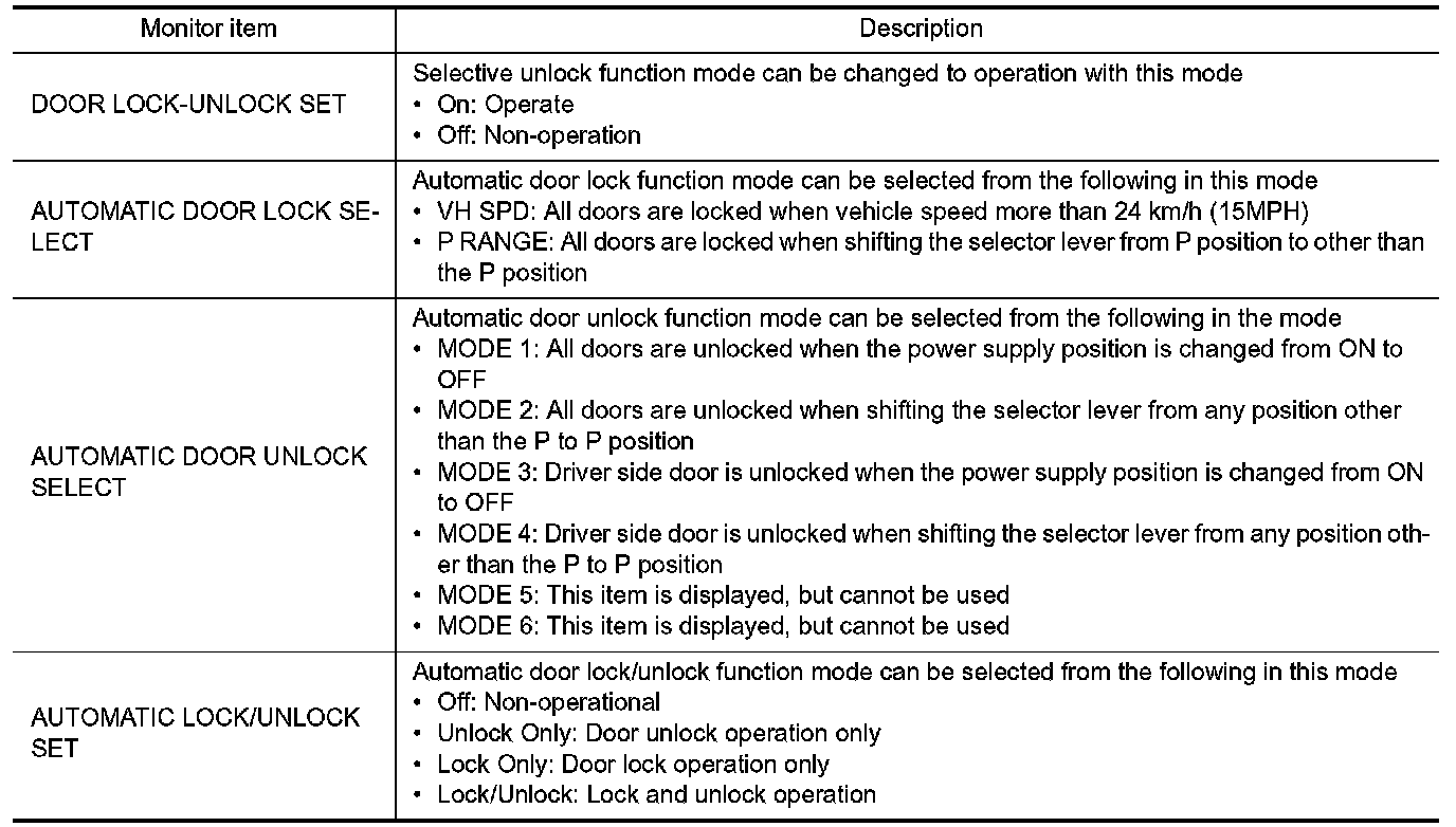 DOOR LOCK : CONSULT-III Function (