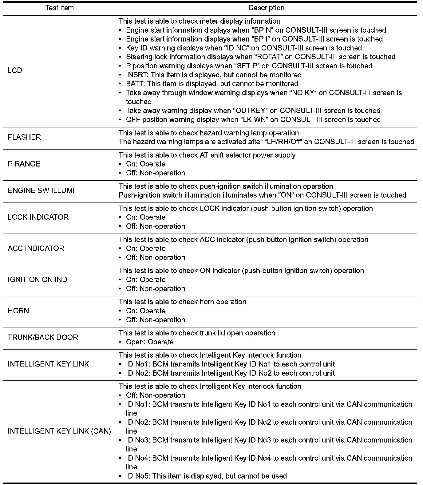 INTELLIGENT KEY : CONSULT-III Function (