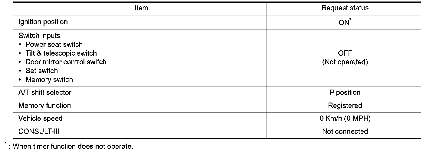 - Satisfy all of the following items. The timer function is not performed if these items are not satisfied.