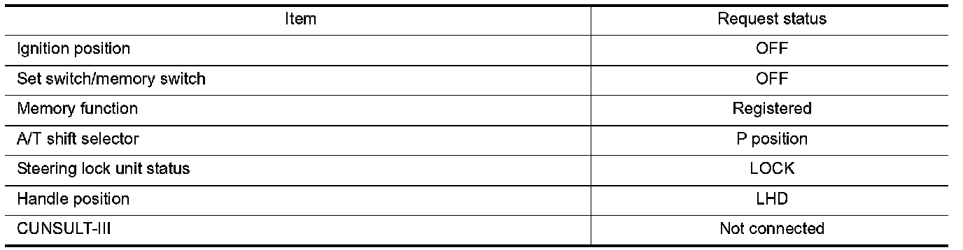 - The memory function can be performed for 45 seconds after opening the driver door even if the ignition switch position is in OFF position.