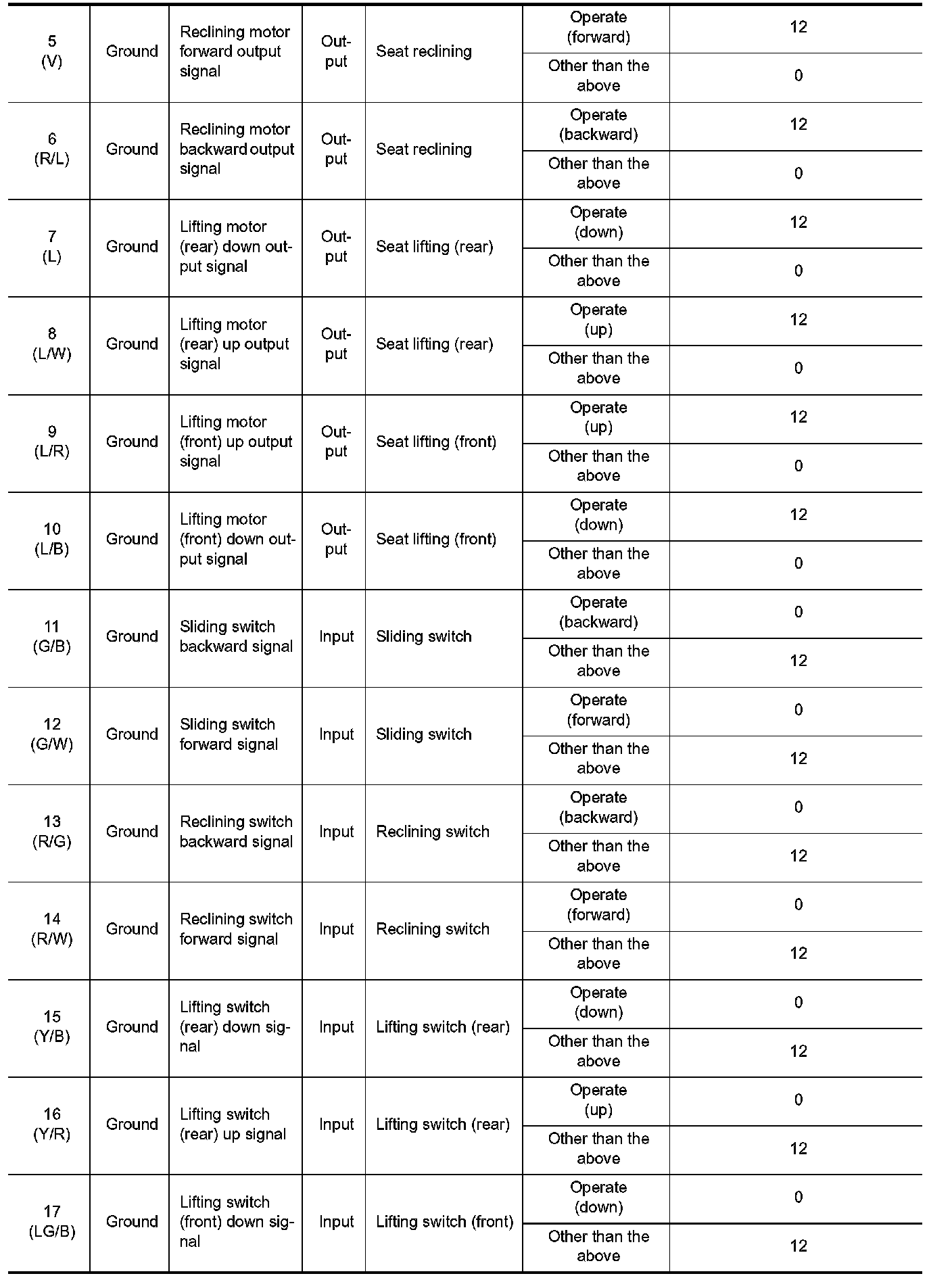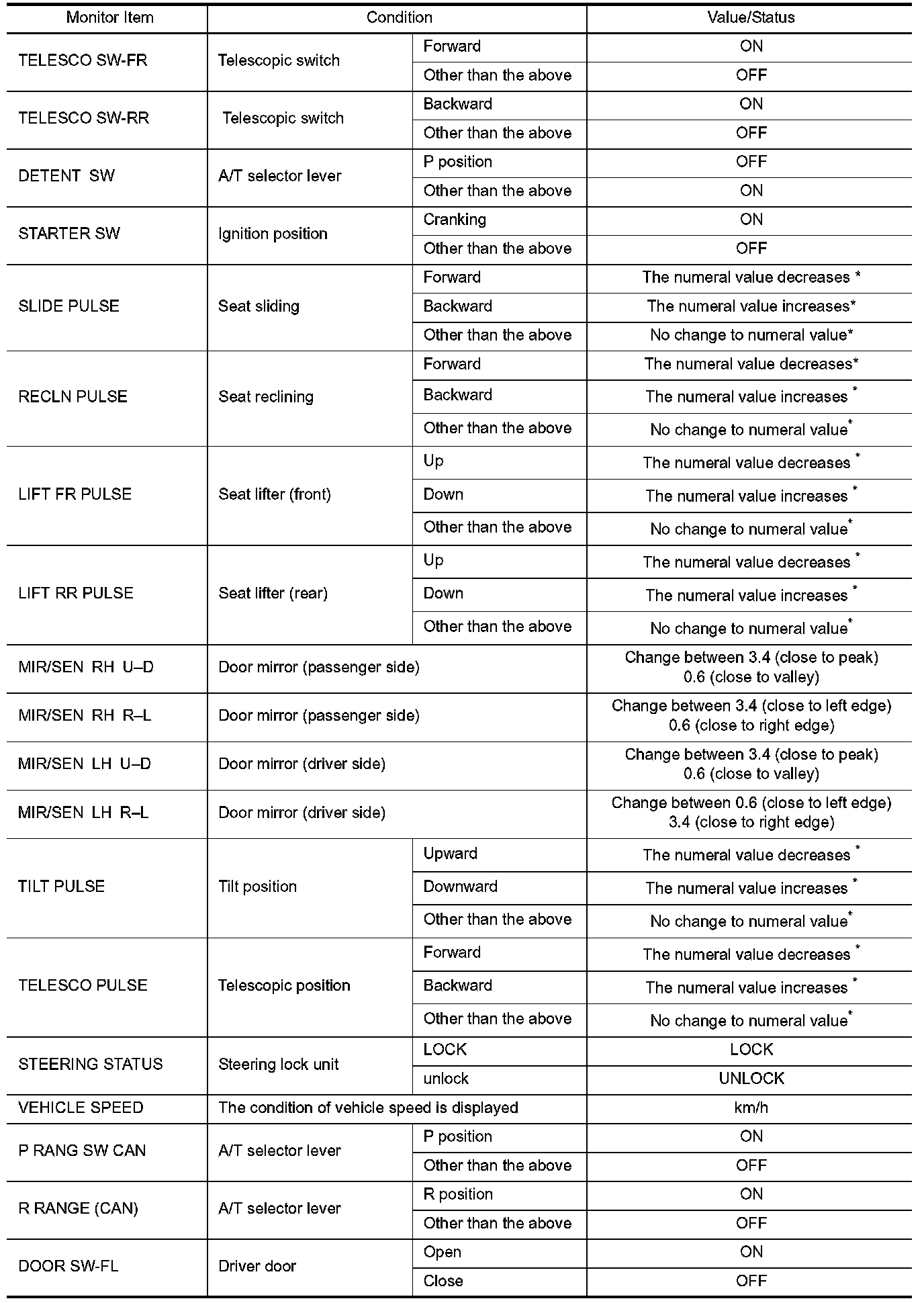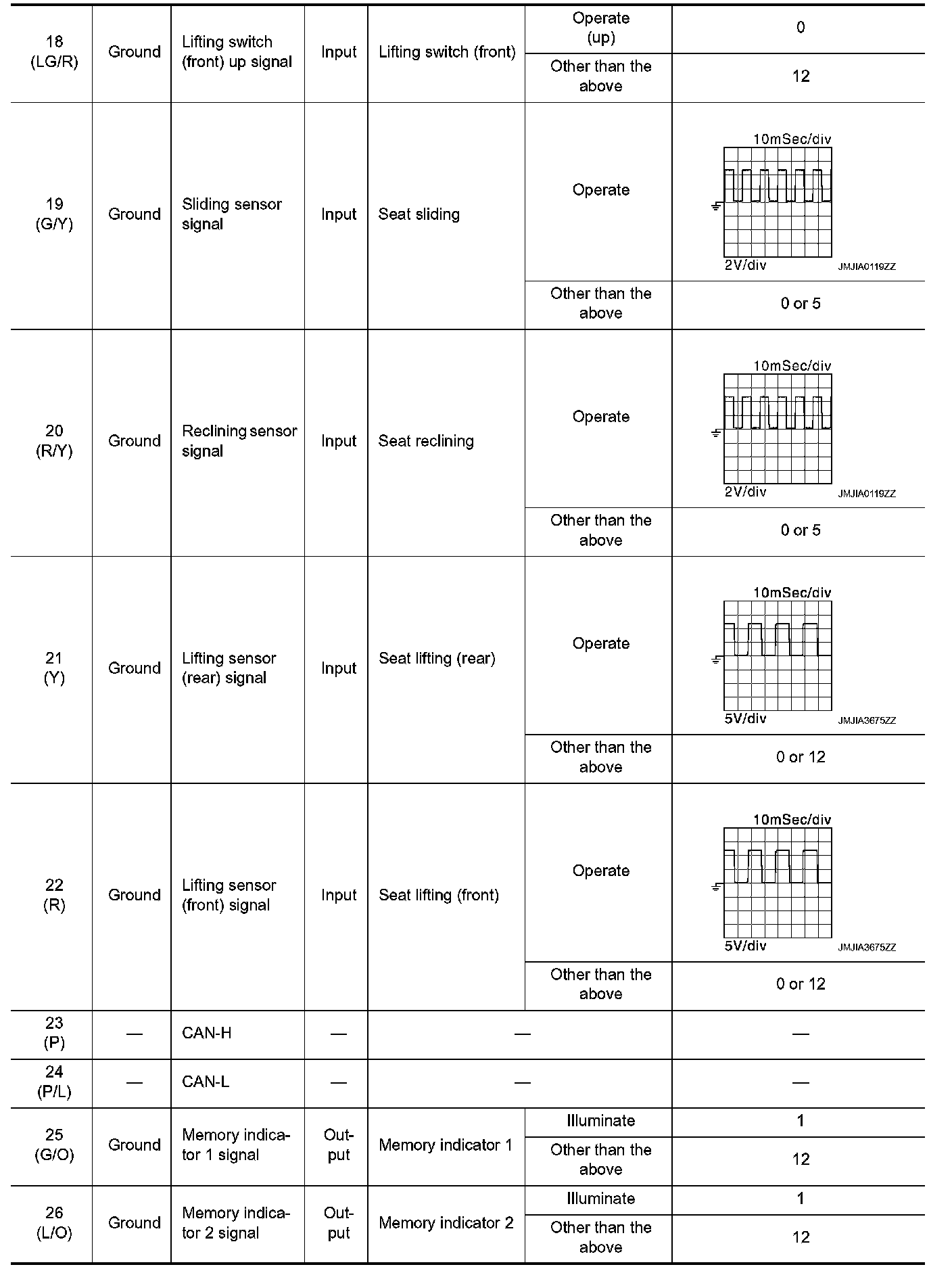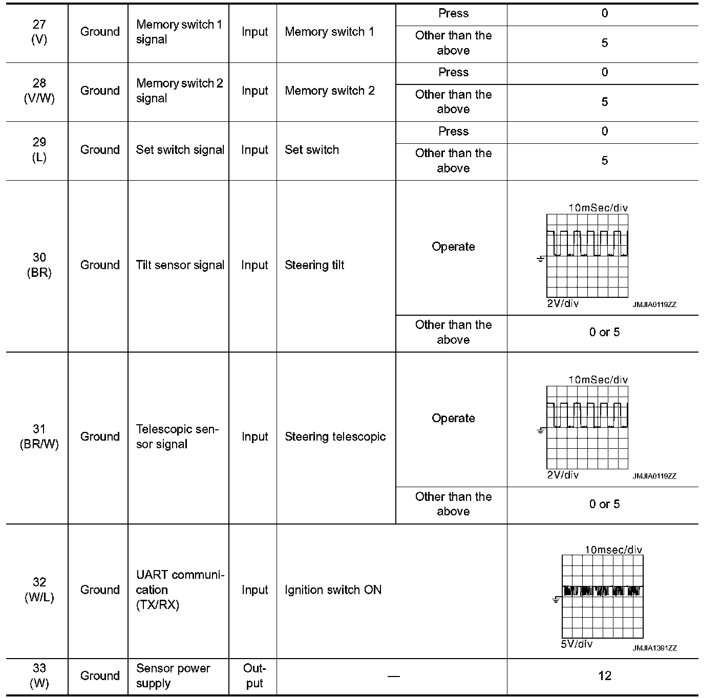 Pinout Values and Diagnostic Parameters