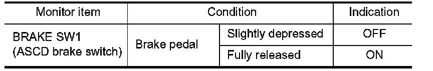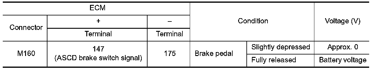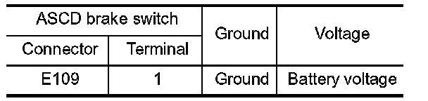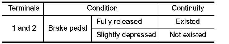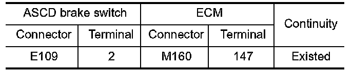 2. Check the continuity between ASCD brake switch terminals under the following conditions.