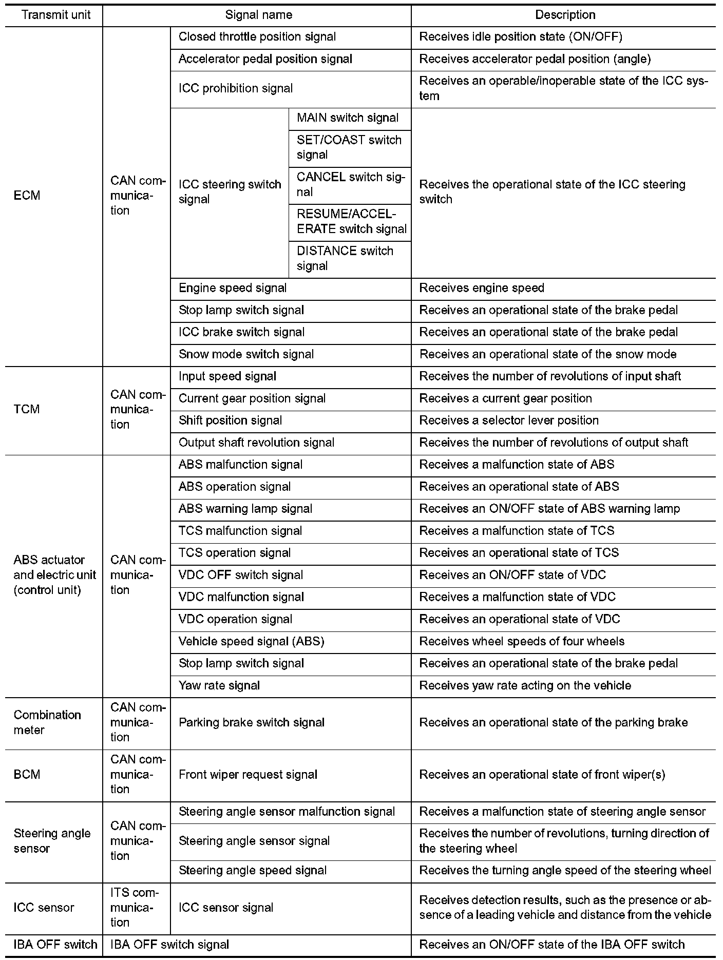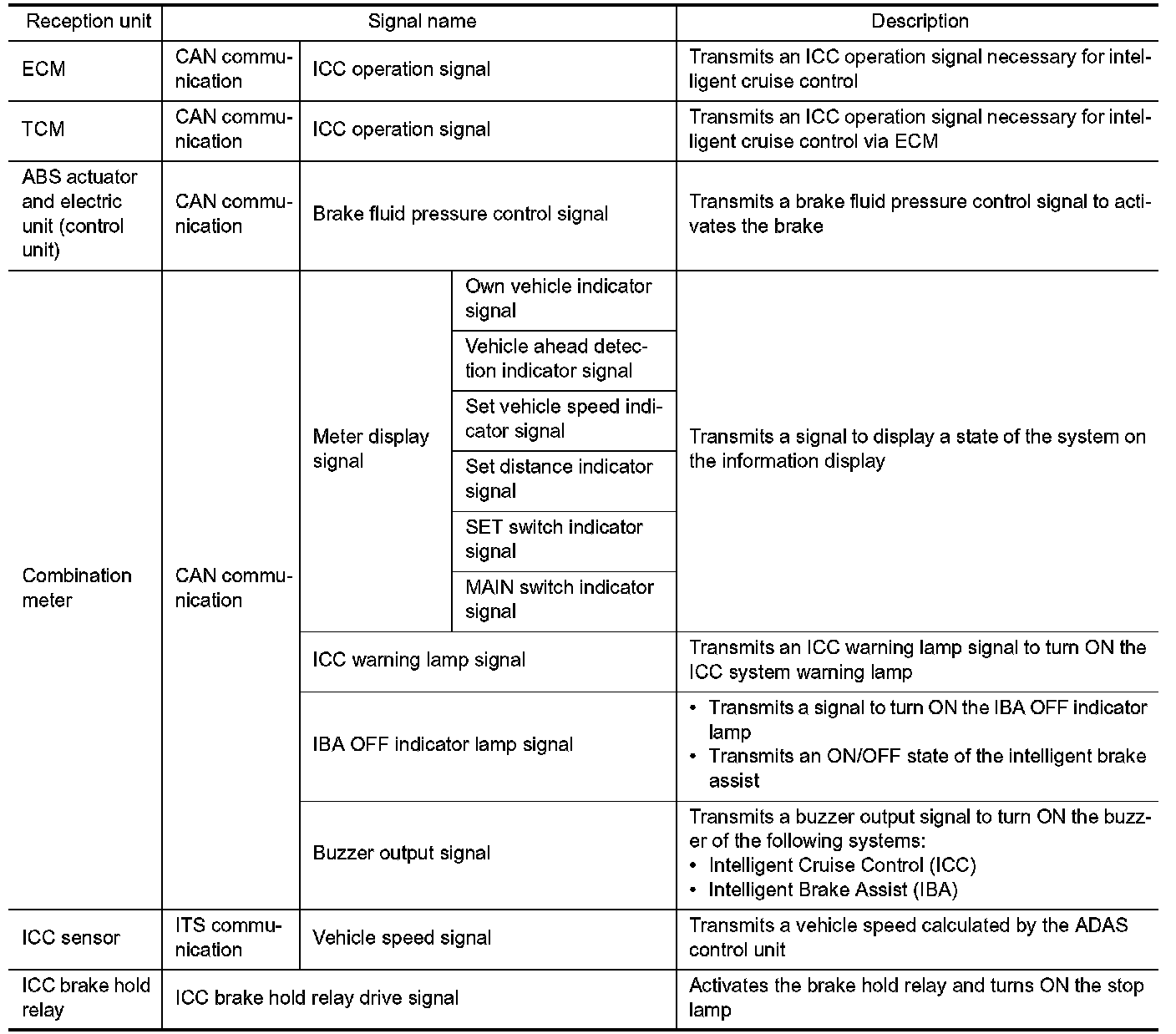 ADAS CONTROL UNIT INPUT/OUTPUT SIGNAL ITEM