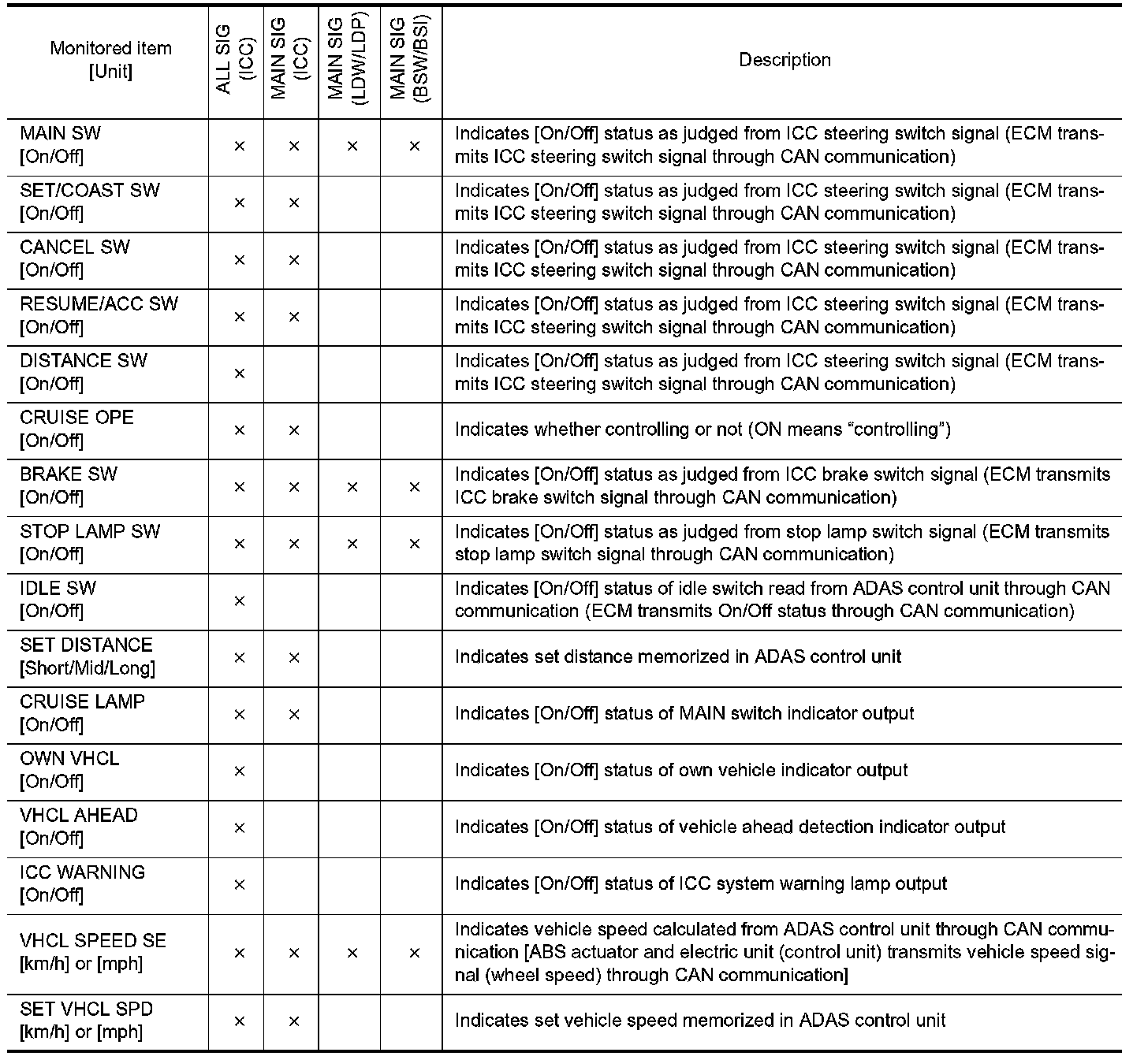 CONSULT-III Function (ICC/ADAS)