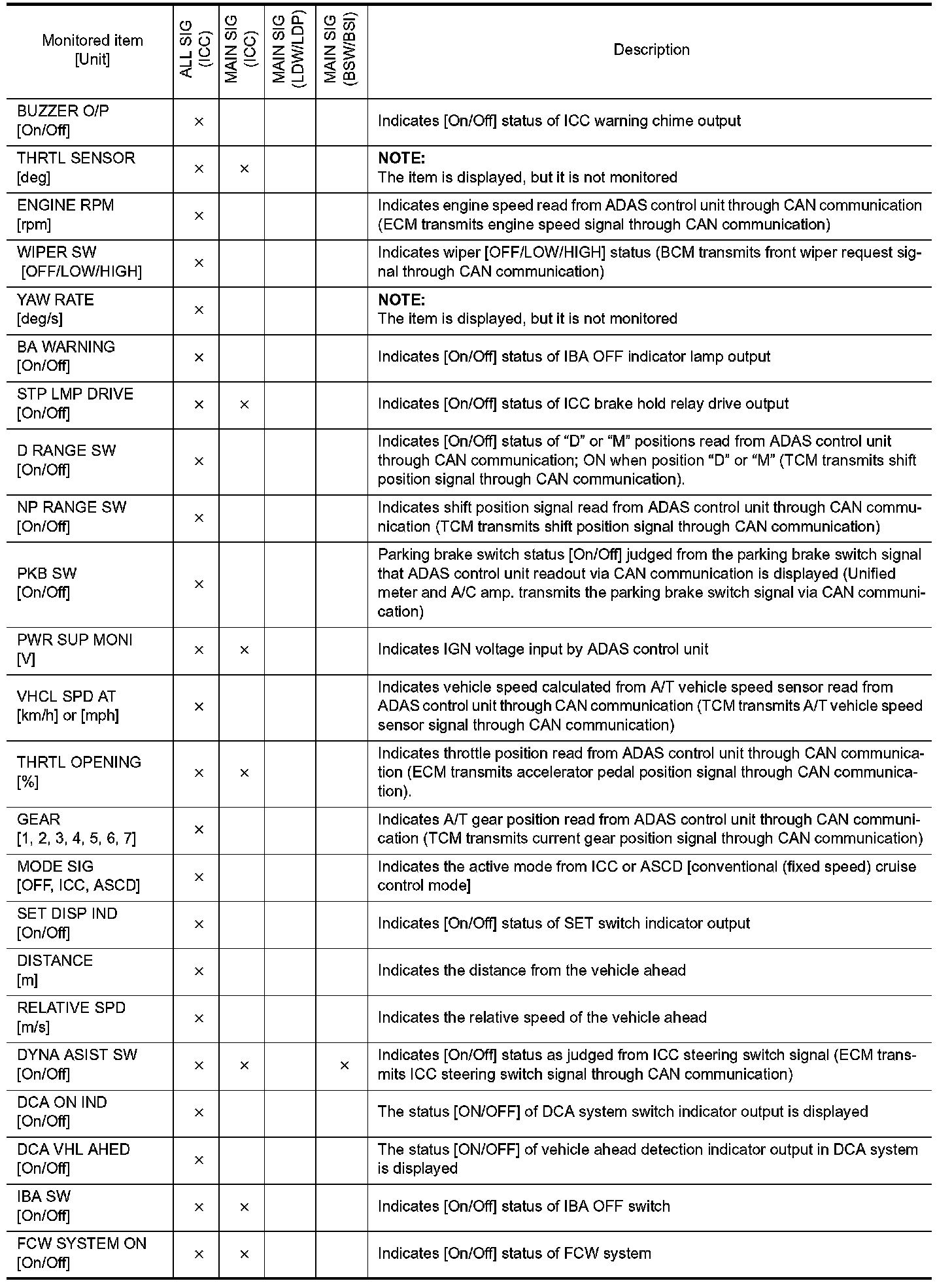 DIAGNOSIS SYSTEM (ADAS CONTROL UNIT)