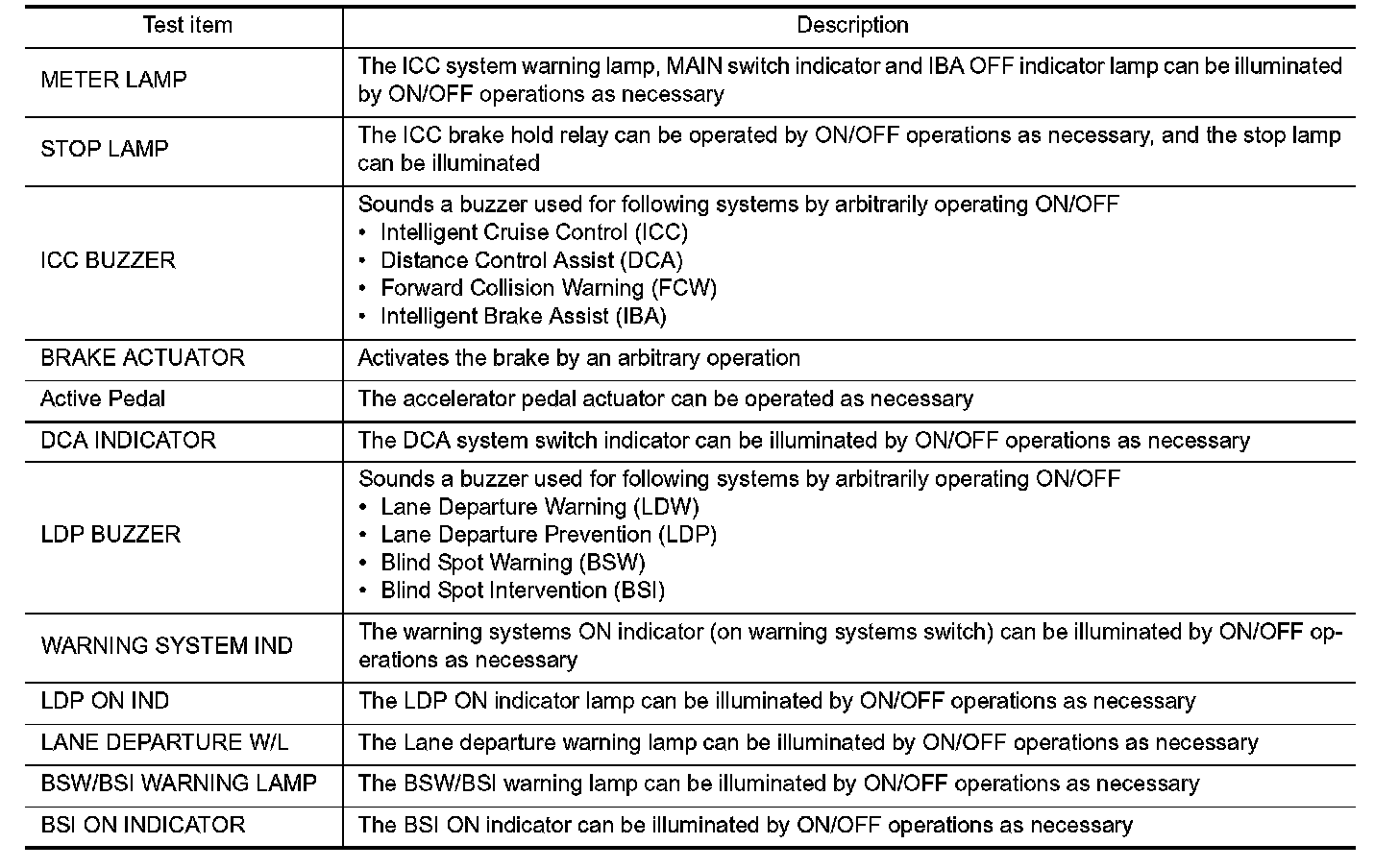- The "Active Test" cannot be performed when the following systems warning lamp is illuminated.