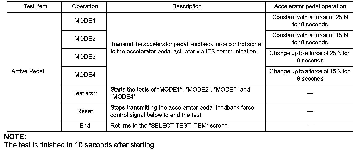 - Depress the accelerator pedal to check when performing the test.
