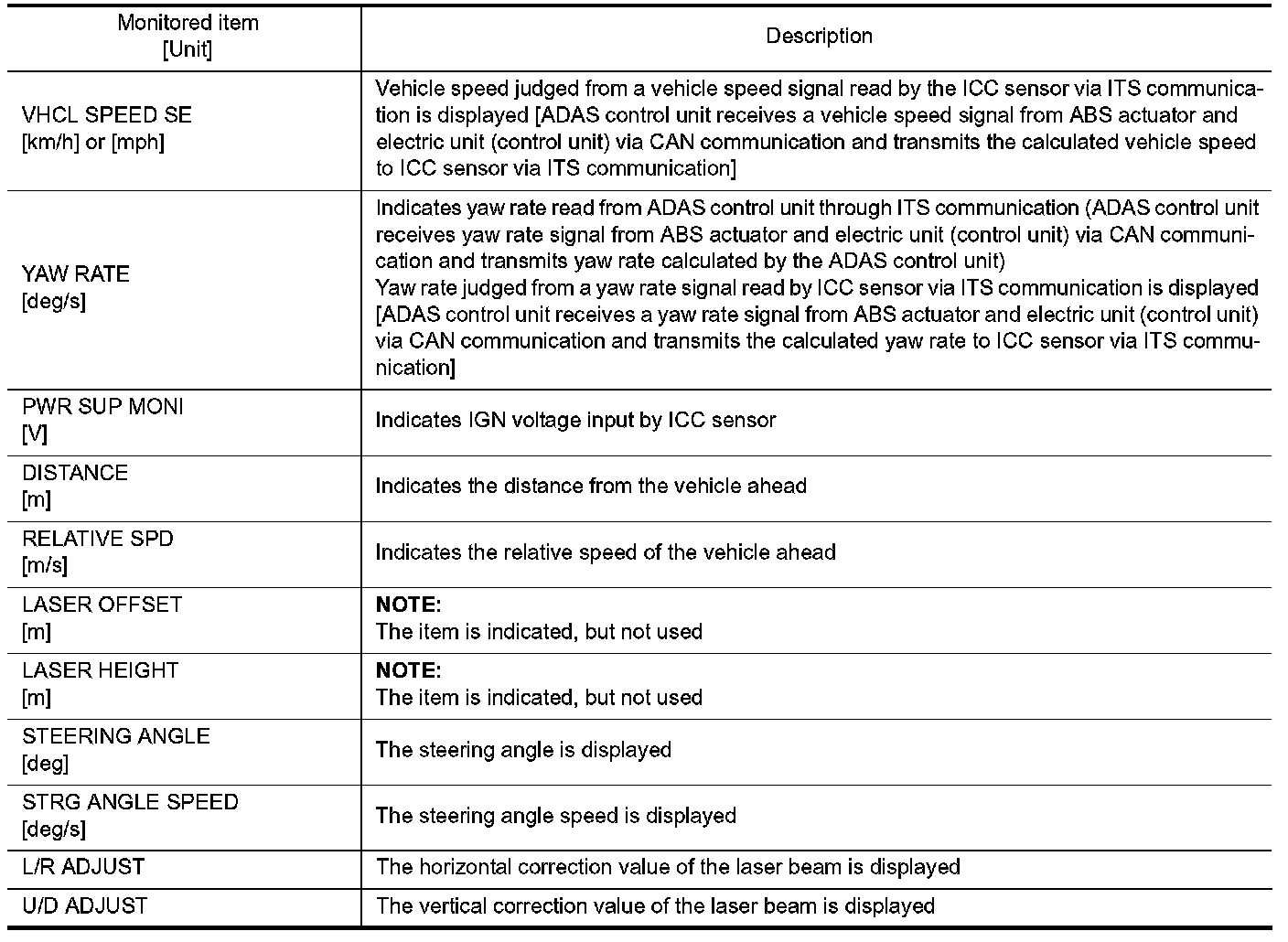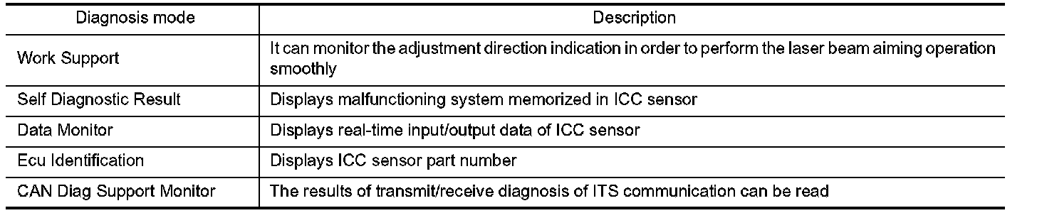 CONSULT-III performs the following functions via CAN communication with ADAS control unit and the communication with ICC sensor.