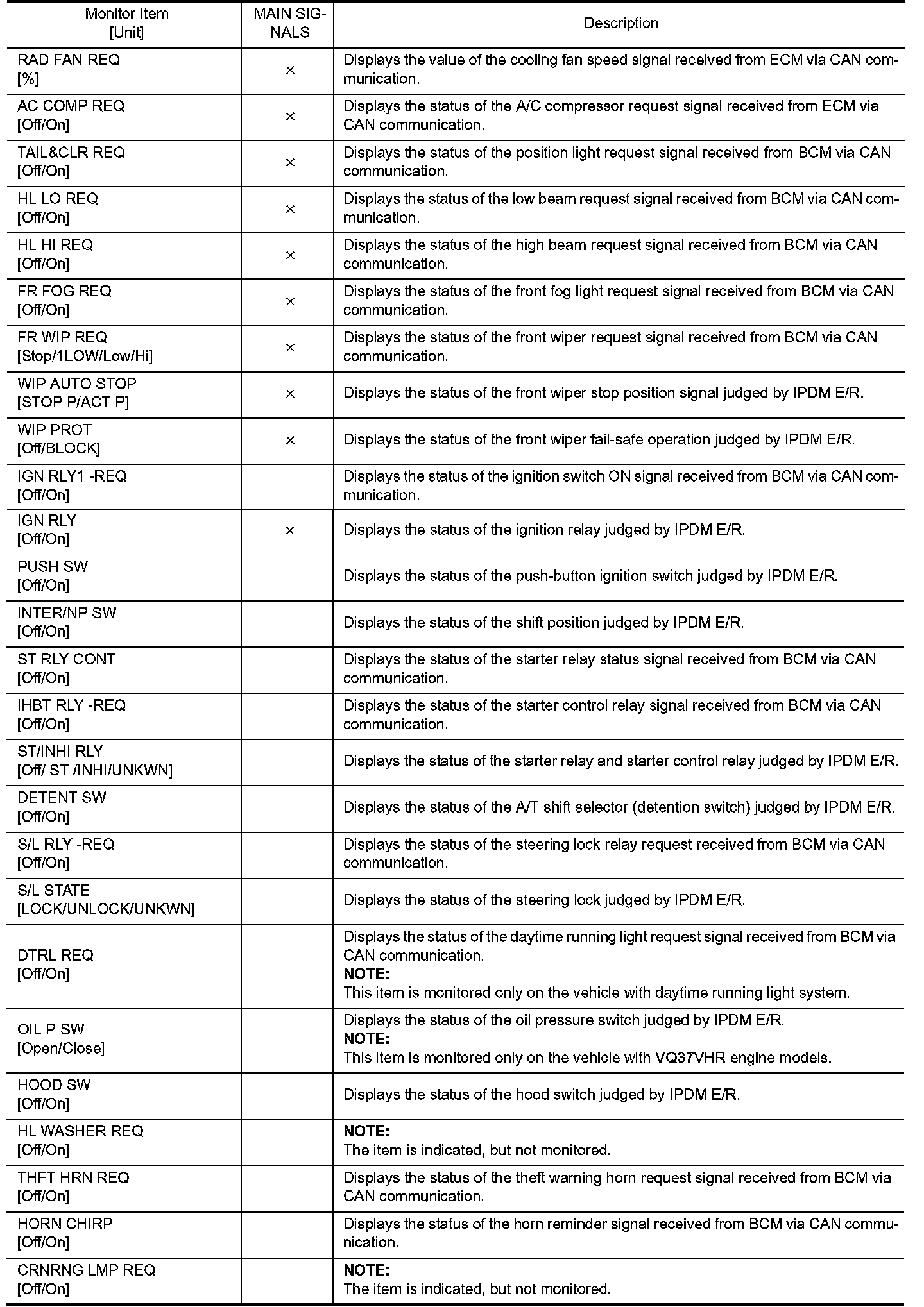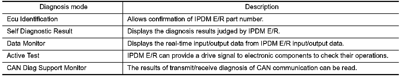 CONSULT-III performs the following functions via CAN communication with IPDM E/R.