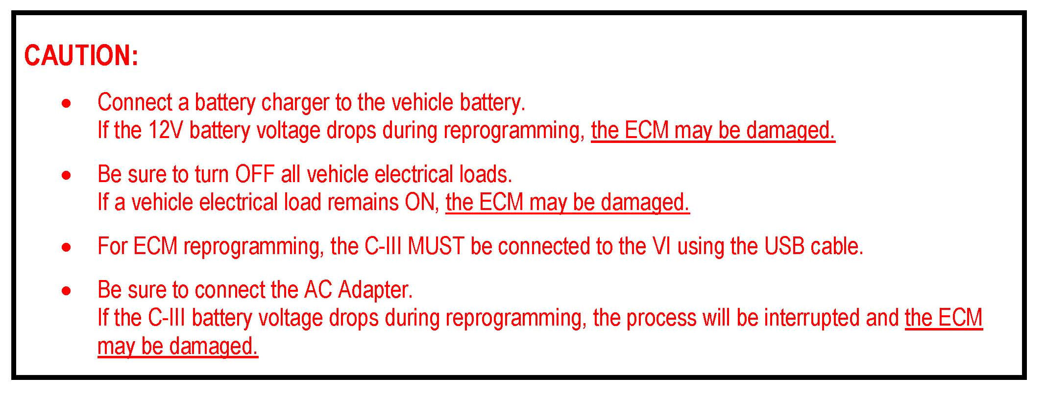 If there are two lines (two reprogramming options) on your C-III screen use the one that does not have the message "Caution! Use ONLY with ITBXX-XXX".