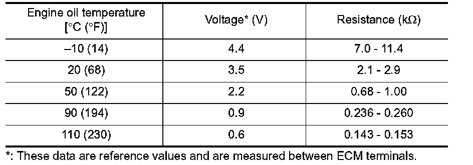 The engine oil temperature sensor is used to detect the engine oil temperature. The sensor modifies a voltage signal from the ECM.