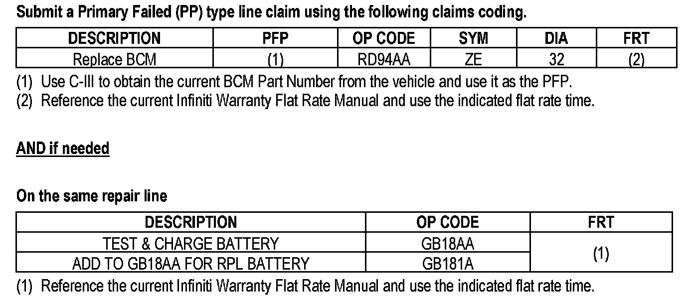 BCM PART NUMBER INSPECTION AND REPLACEMENT