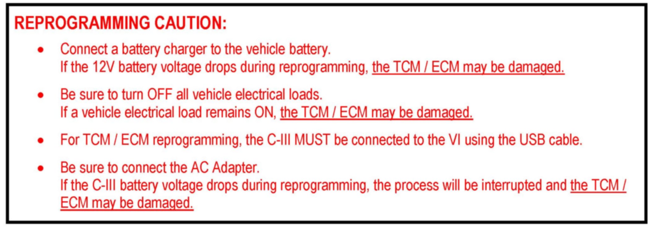 If there are two Engine lines (two ECM reprogramming options) on your C-III screen, use the one that does not have the message "Caution! Use ONLY with ITBXX-XXX".