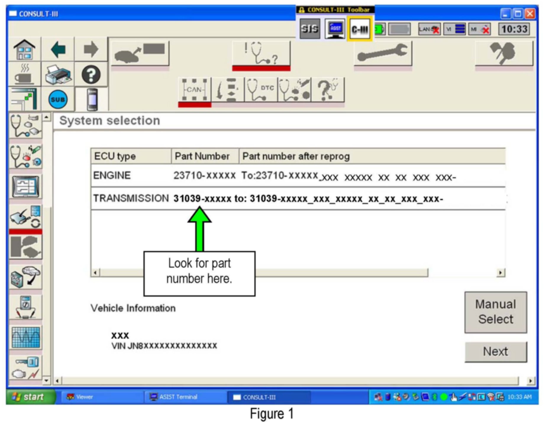 ^ If you are not familiar with the TCM reprogramming procedure refer to "CONSULT- III (C-III) TCM Reprogramming" general procedure.