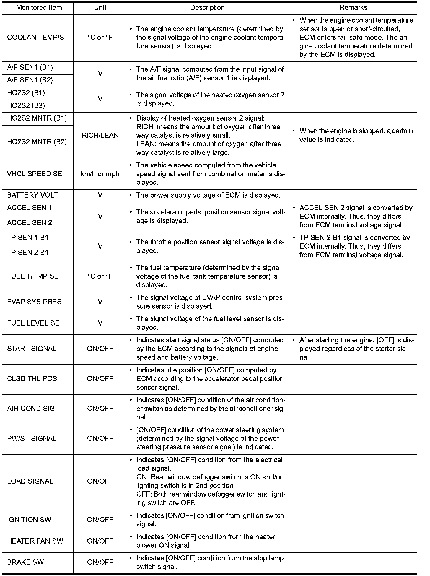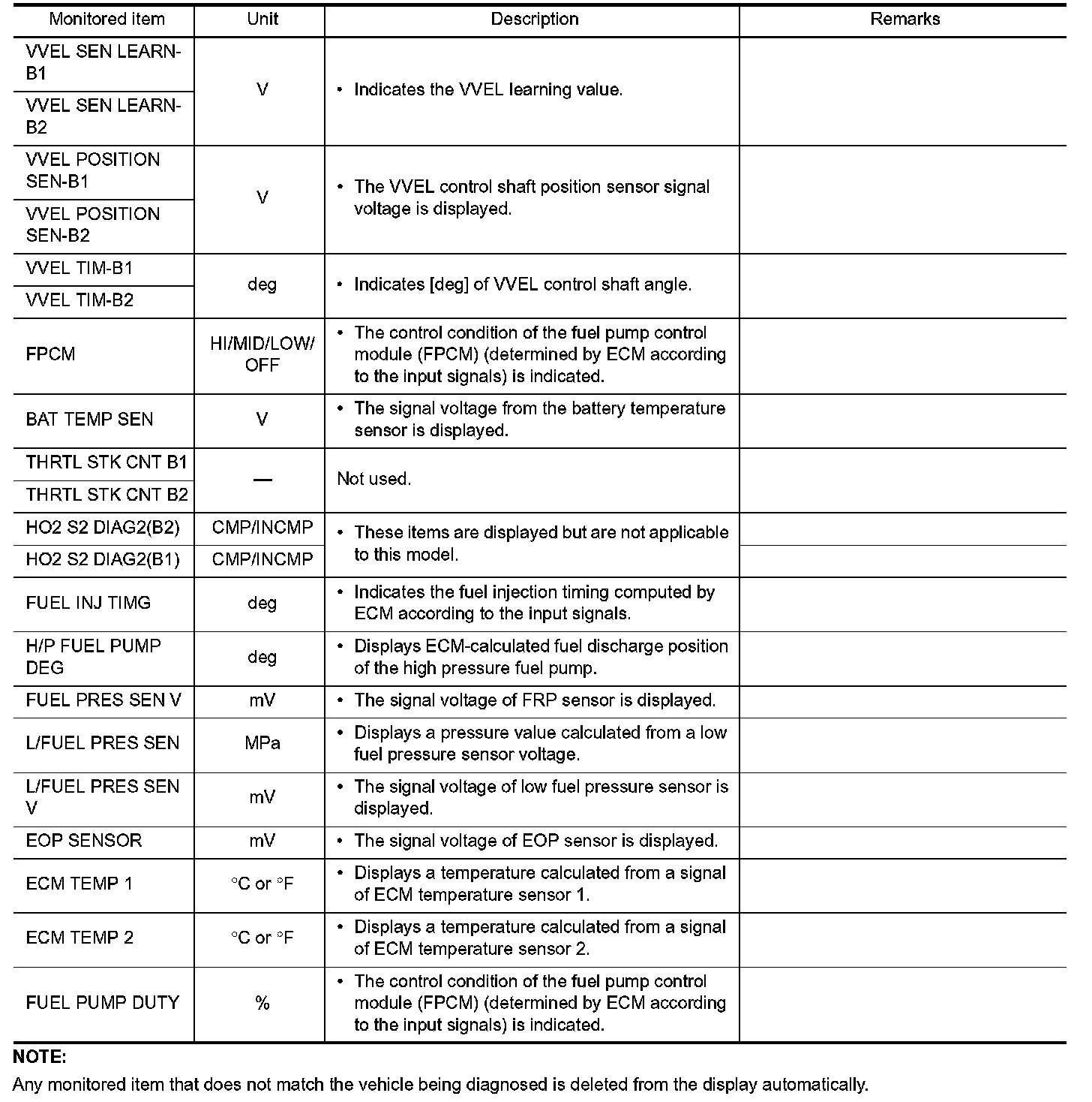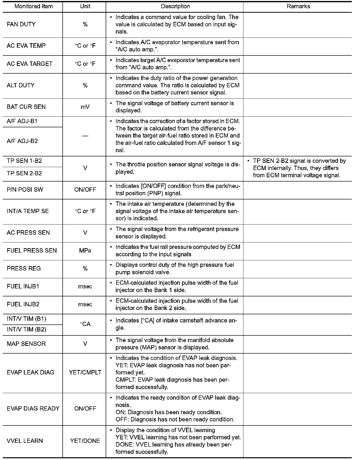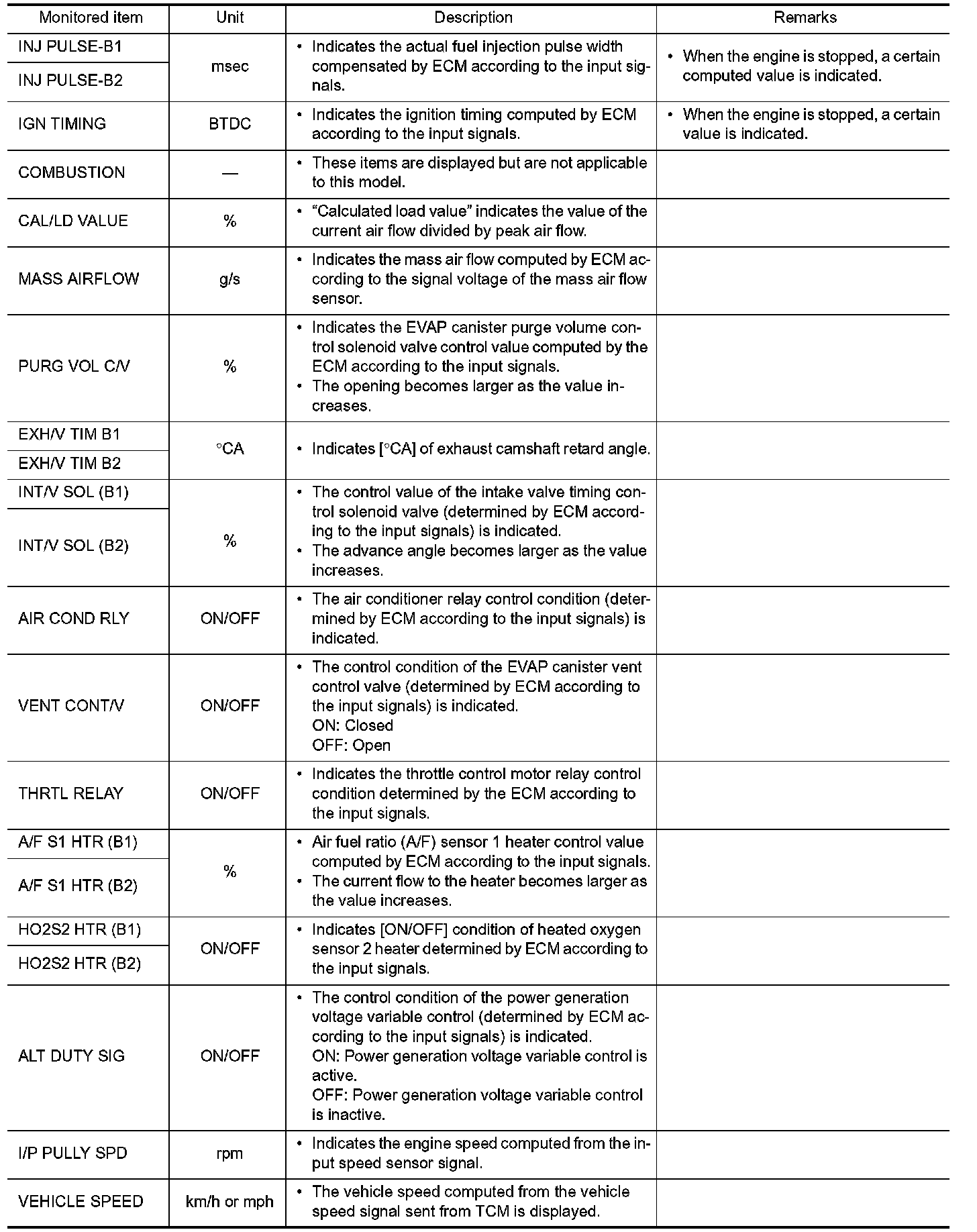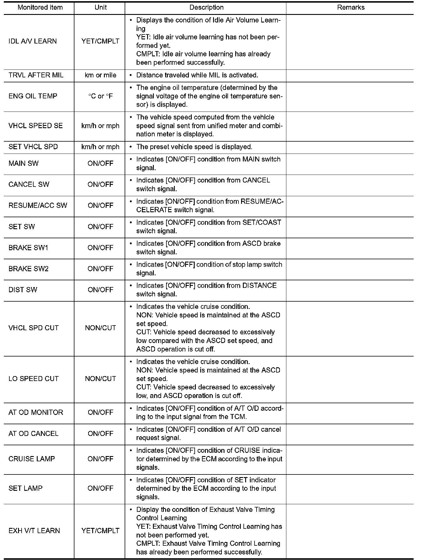 - If "TIME" is neither "0" nor "1t", the DTC occurred in the past and ECM shows the number of times the vehicle has been driven since the last detection of the DTC.