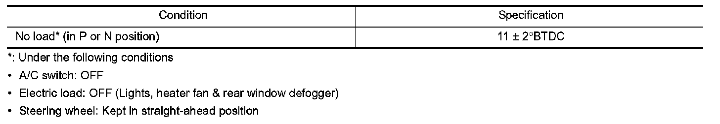 Ignition Timing: Specifications