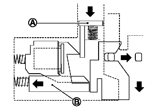 When an electrical or mechanical malfunction occurs in shift lock system, selector lever shift operation from the "P" position becomes impossible. When shift lock release button (A) is pressed in this state, stopper (B) is forcibly pressed into shift lock unit, and then it becomes possible to release shift lock. By this operation, shift operation becomes possible when a malfunction occurs in shift lock system.