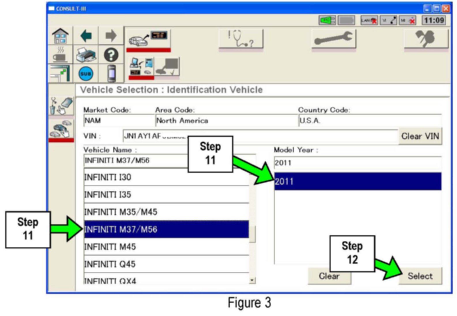 11. Select Vehicle Name (Infiniti M371M56) and then Model Year (2011). See Figure 3.