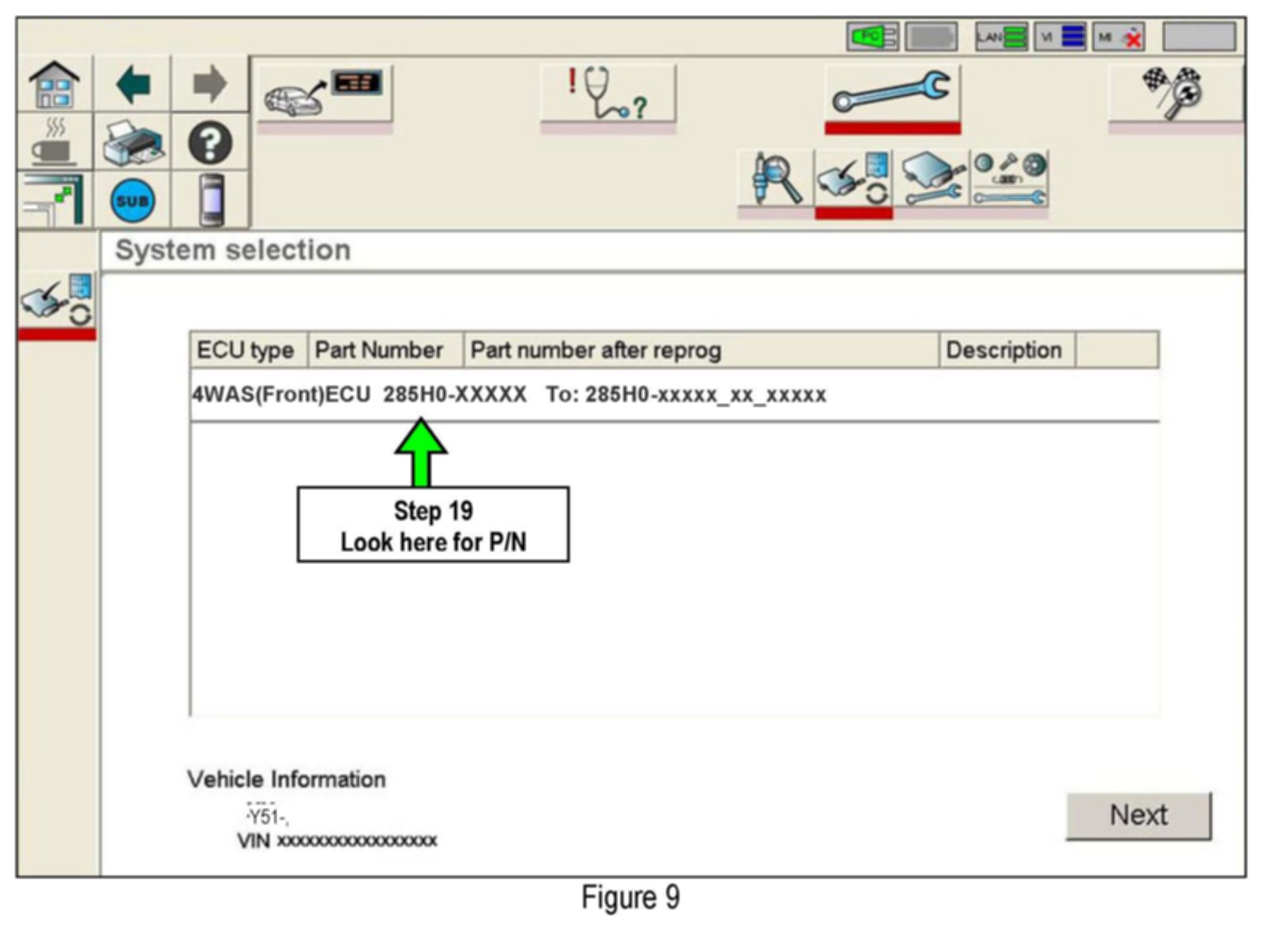 ^ If a 4WAS (FRONT) ECU part number is not listed this campaign does not apply or it has already been completed. Close C-III and disconnect from the vehicle and then recheck Service Comm for campaign eligibility.