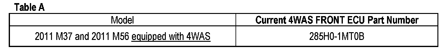 b. Compare the Part Number you wrote down to the number in the Current 4WAS FRONT ECU Part Number column in Table A above.
