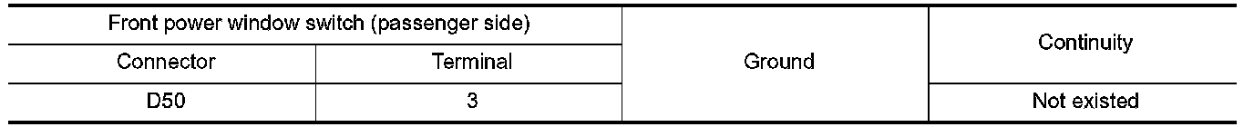 3. Check continuity between front power window switch (passenger side) harness connector and ground.