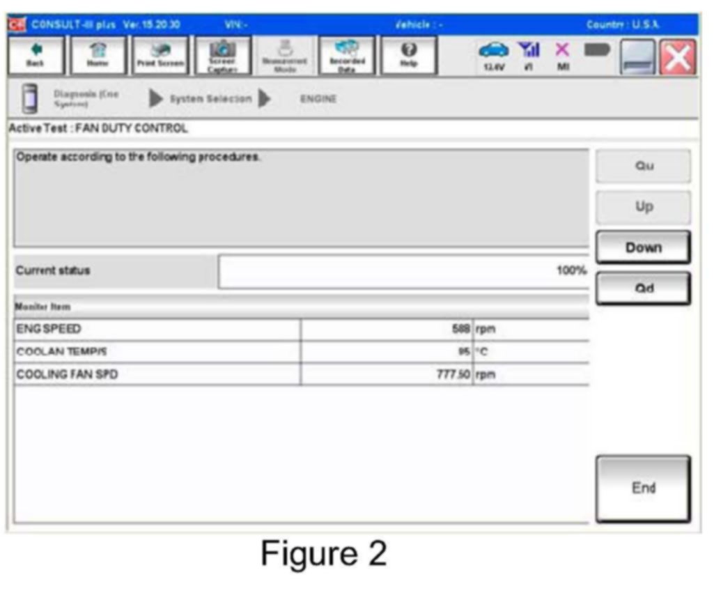 ^ Confirm that the cooling fan speed is below the engine idle speed.
