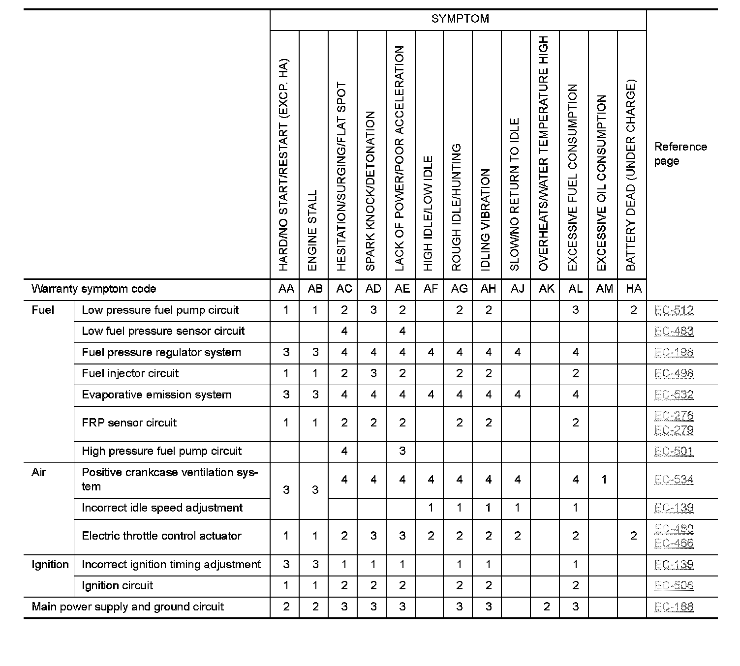 ENGINE CONTROL SYSTEM SYMPTOMS